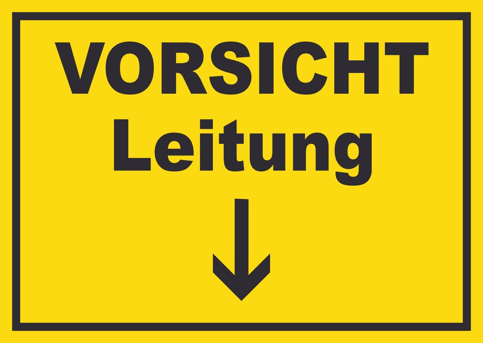 Vorsicht Leitung mit Richtungspfeil unten Schild