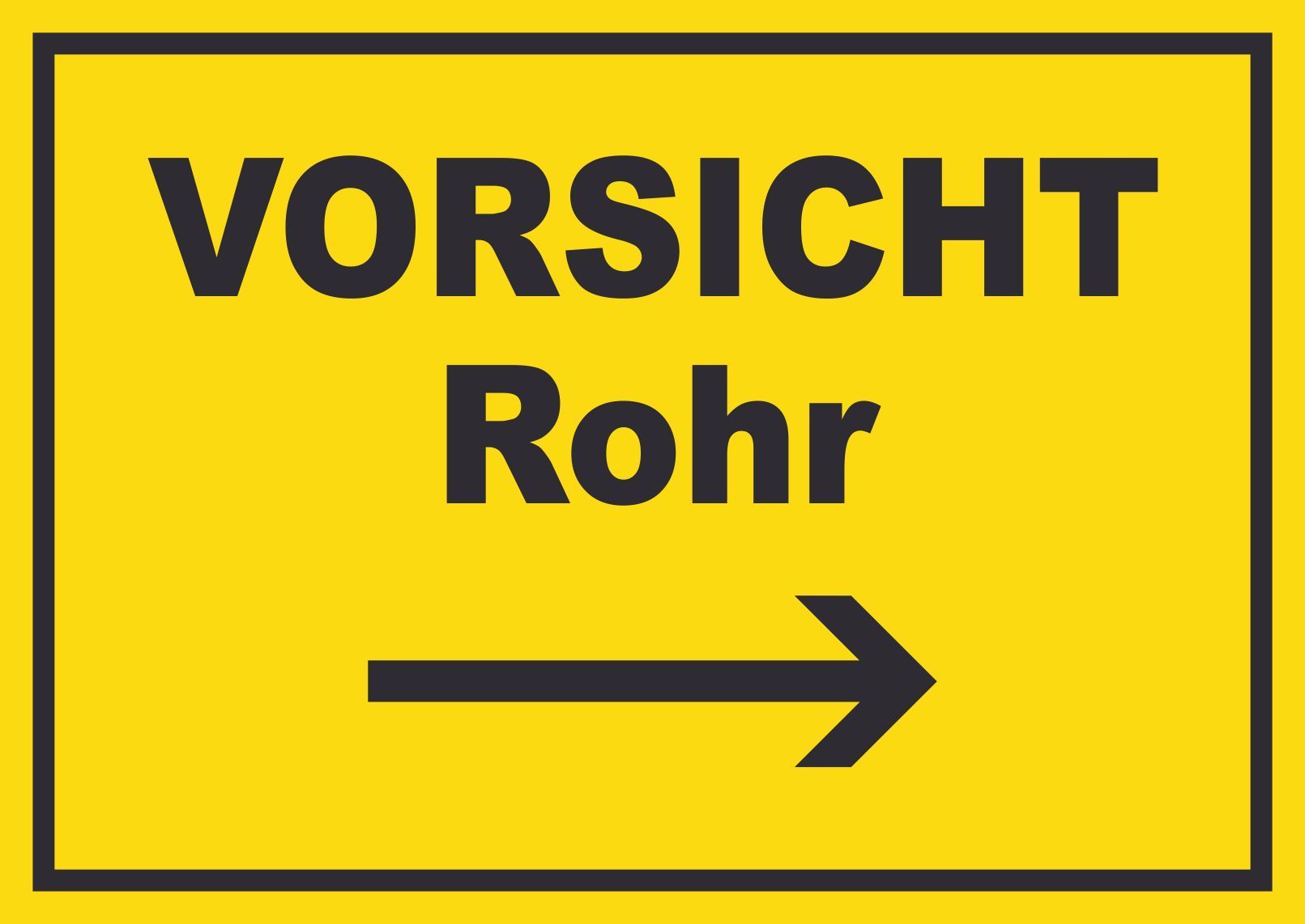 Vorsicht Rohr mit Richtungspfeil rechts Schild
