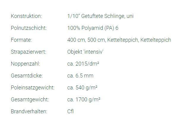 Teppichboden Vorwerk® Parma Schlingenteppichboden der Spitzenklasse 100 % Polyamid 400 oder 500 cm breit Preis pro m². Wir liefern Teppichböden mit Spedition ab 4 m² frei Bordsteinkante nach telefonischer Avis (außer auf Inseln) versandkostenfrei bitte teilen Sie uns vor oder nach dem