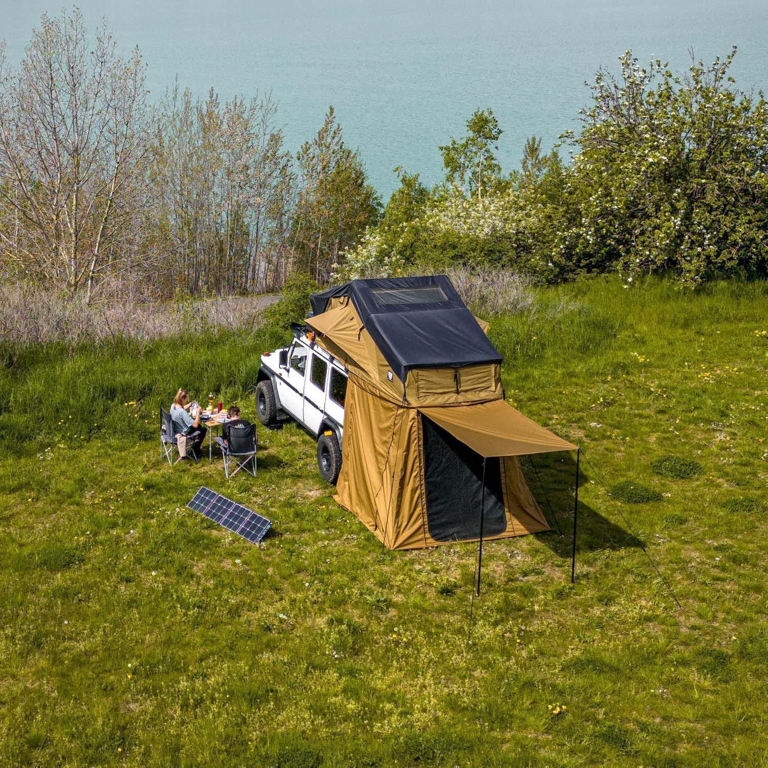 Das Vorzelt für das BIG WILLOW ist eine vielseitige Ergänzung zu deinem Dachzelt und bietet dir einen überdachten Einstieg. Es passt nahezu für jedes Fahrzeug, da es über das smarte Zip-System in der Höhe eingestellt werden kann (200 - 220 cm). Leichte Höhendifferenzen können mithilfe von Auffahrkeilen ausgeglichen werden, um das Vorzelt besser abspannen zu können. Mit dem Vorzelt hast du die Option, dein BIG WILLOW um zusätzlichen Lagerplatz, zwei weitere Schlafplätze oder einen ...
