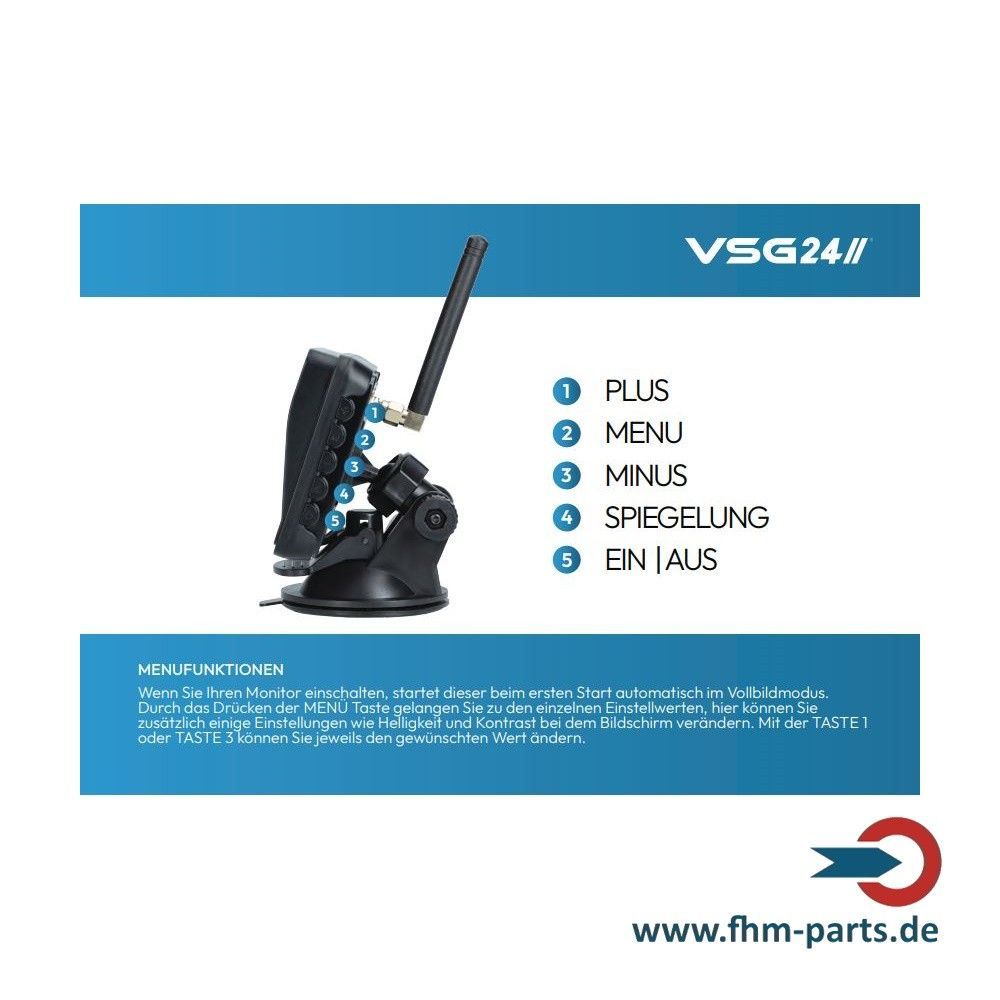 VSG24 4,3“ Funk Rückfahrkamera Set PKW KFZ kabellos Nummernschildkamera
