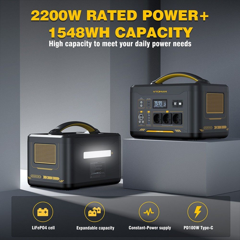 VTOMAN Jump 2200 Tragbare Powerstation 1548Wh LiFePO4-Akku, 2200W Wechselstromausgang