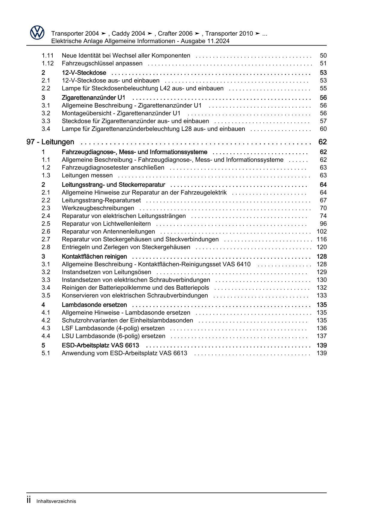 VW Amarok S6 2016-2022 Allgemeine Infos Elektrische Anlage Reparaturanleitung