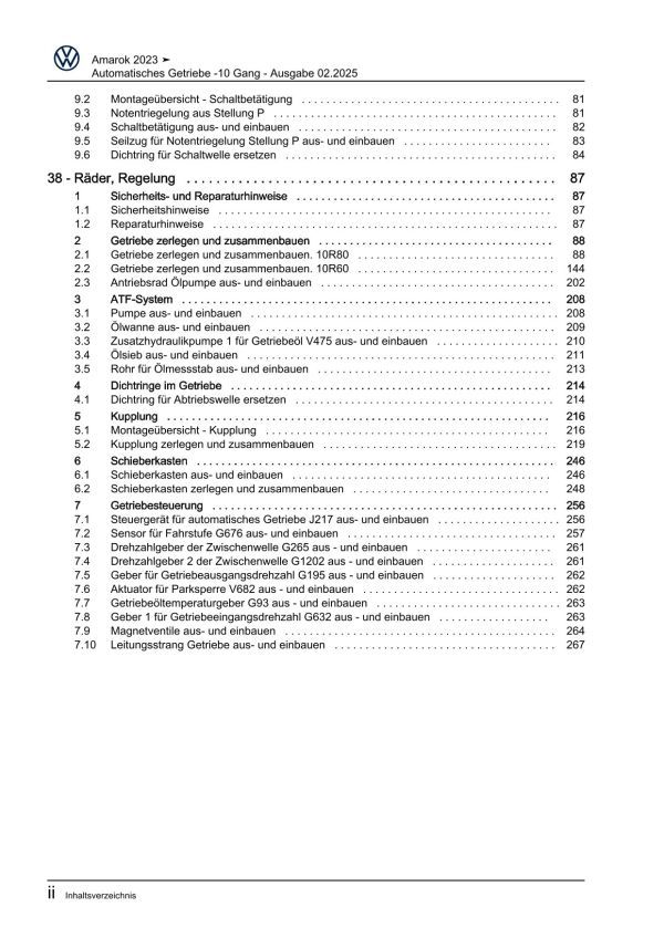 VW Amarok T1 ab 2022 10 Gang Automatisches Getriebe 0ZA 0Z9 Reparaturanleitung
