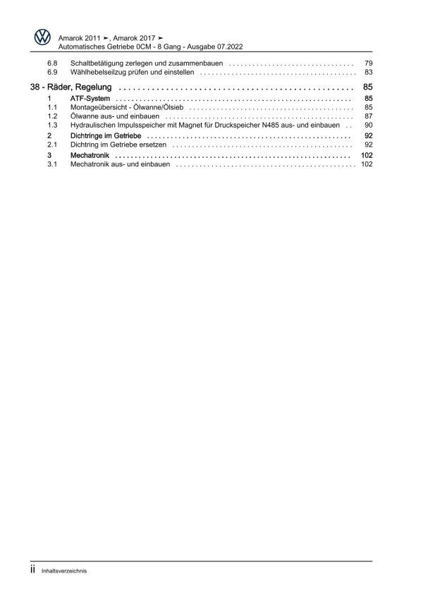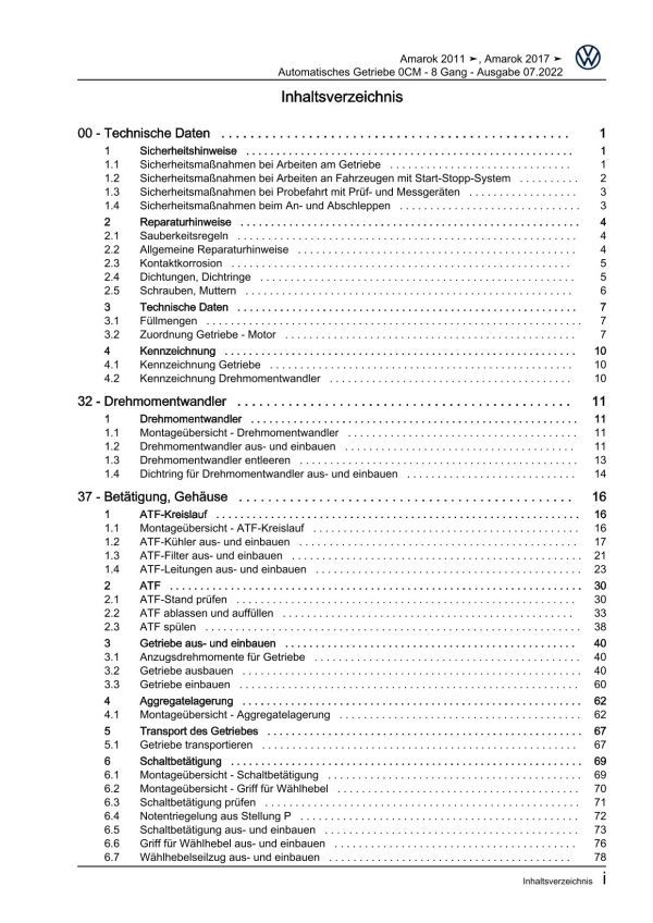 VW Amarok Typ S6 2016-2022 8 Gang Automatisches Getriebe 0CM Reparaturanleitung