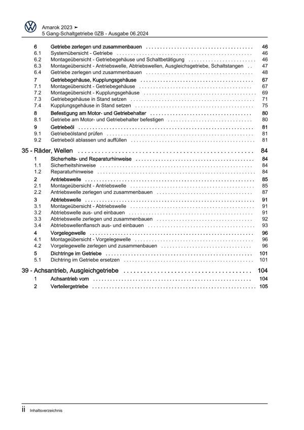 VW Amarok Typ T1 ab 2022 5 Gang Schaltgetriebe 0ZB Kupplung Reparaturanleitung