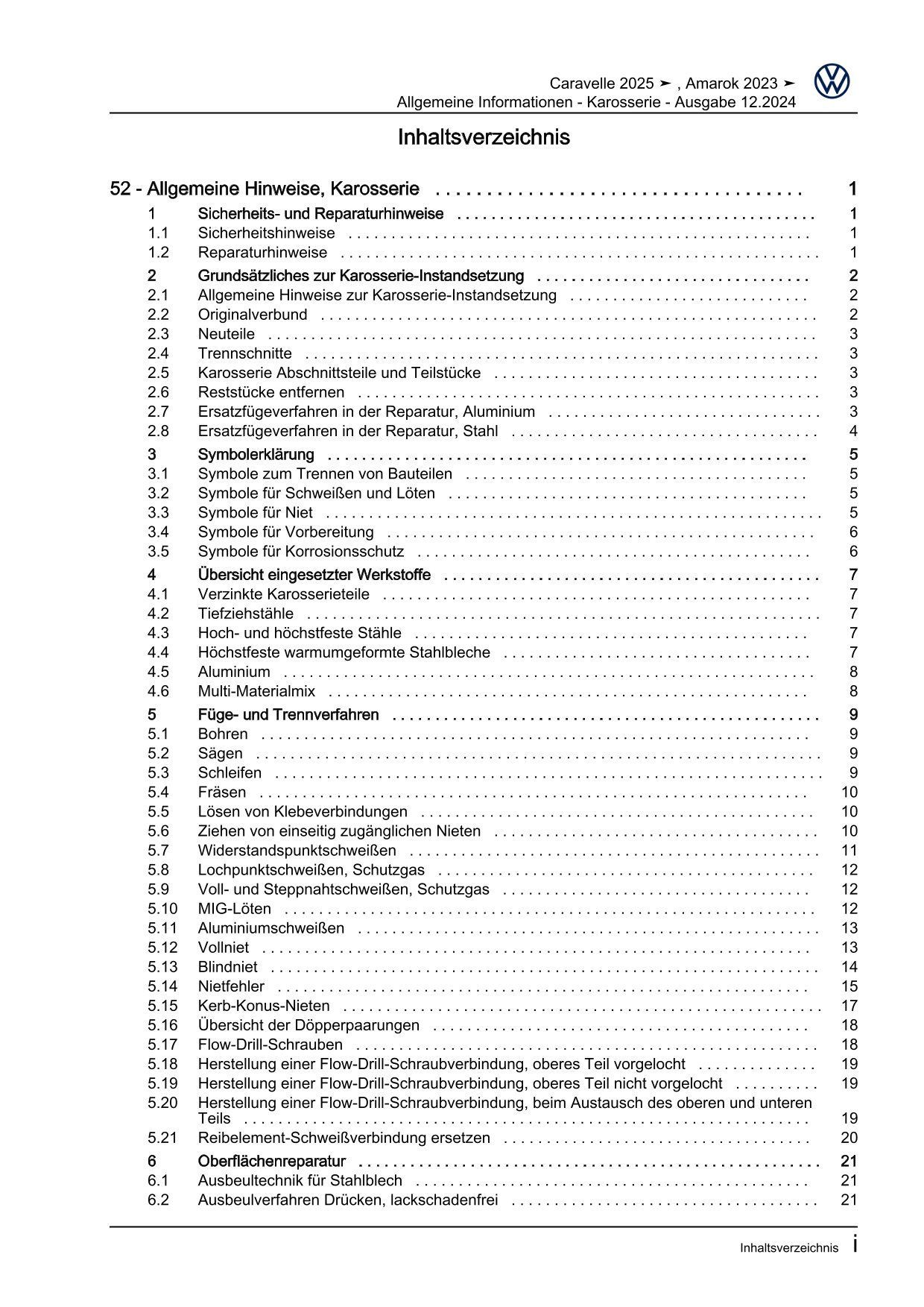 VW Amarok Typ T1 ab 2022 Allgemeine Informationen Karosserie Reparaturanleitung