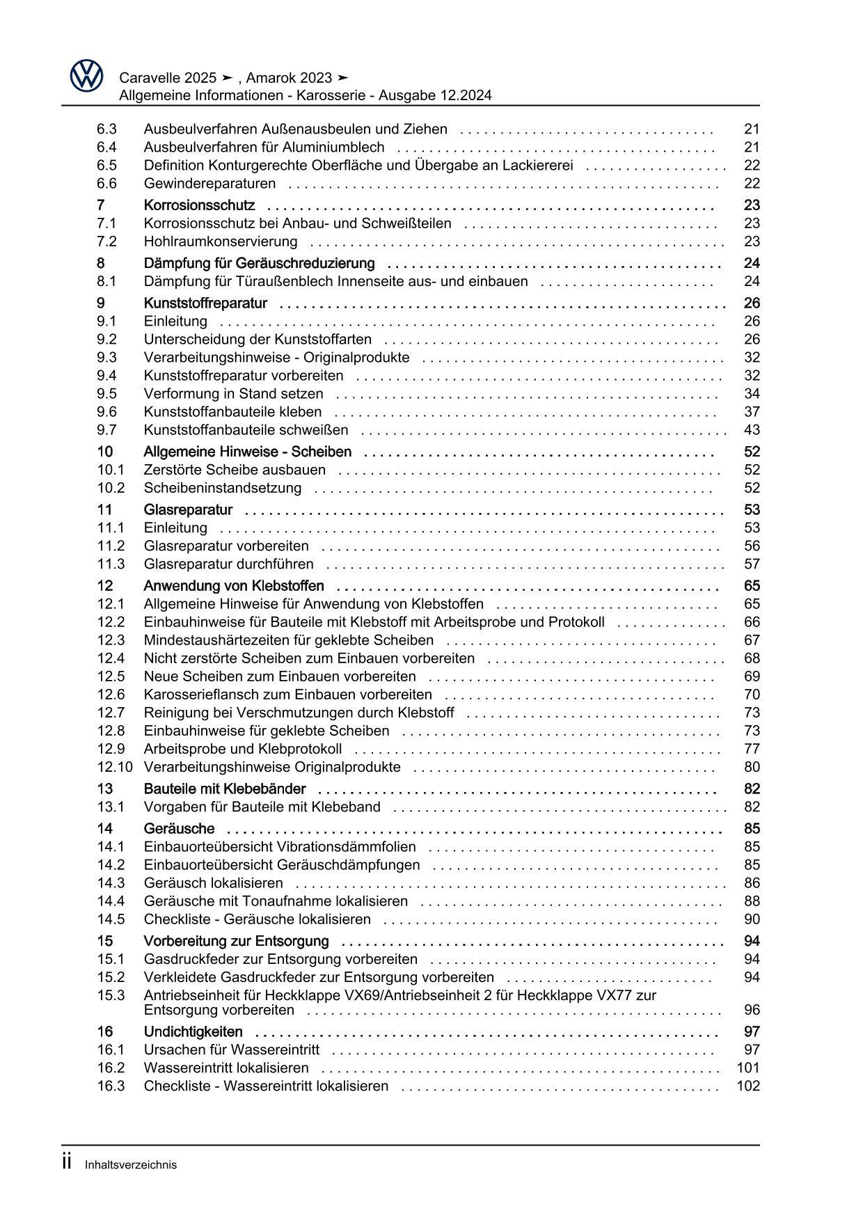 VW Amarok S6 2016-2022 Allgemeine Informationen Karosserie Reparaturanleitung