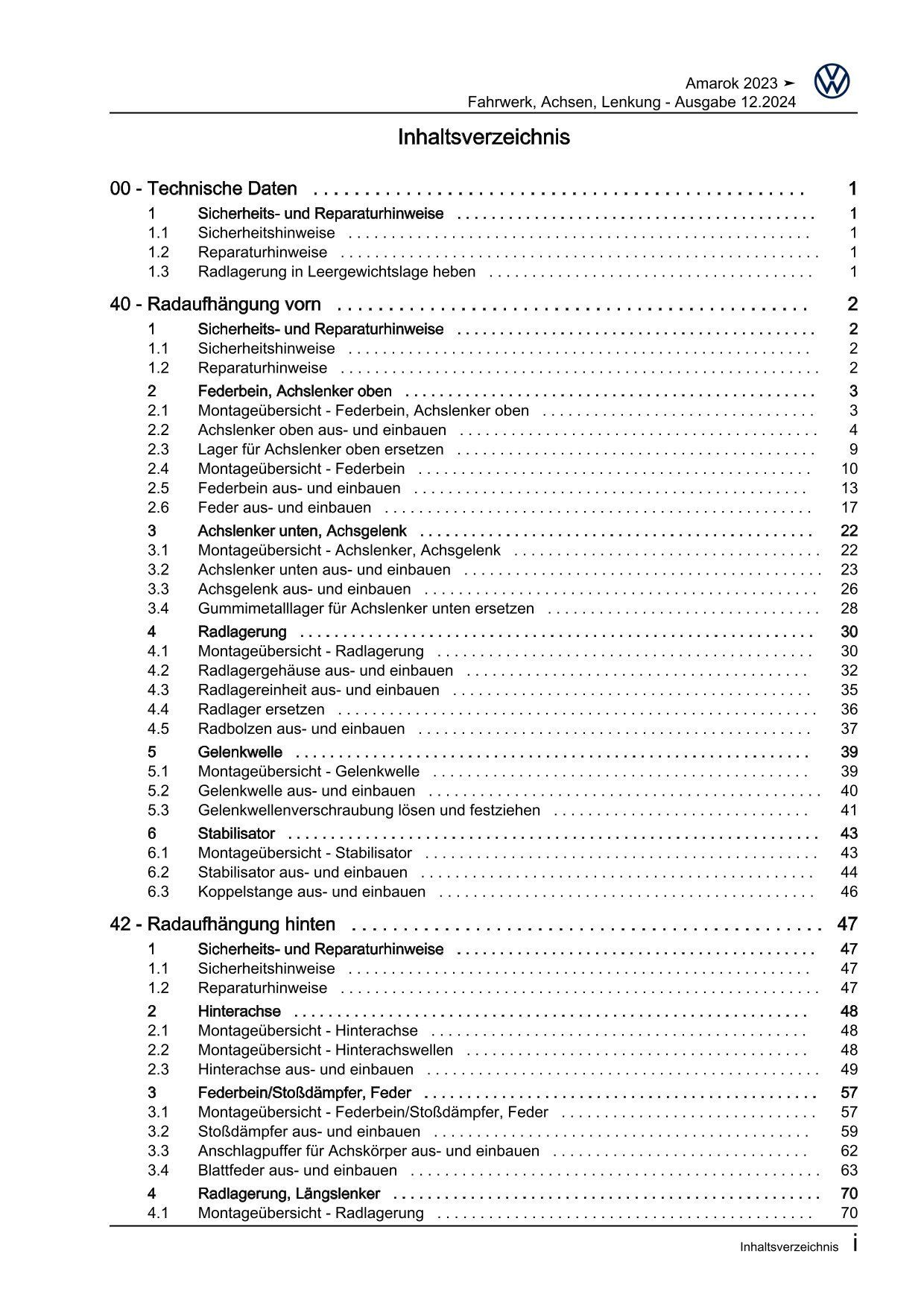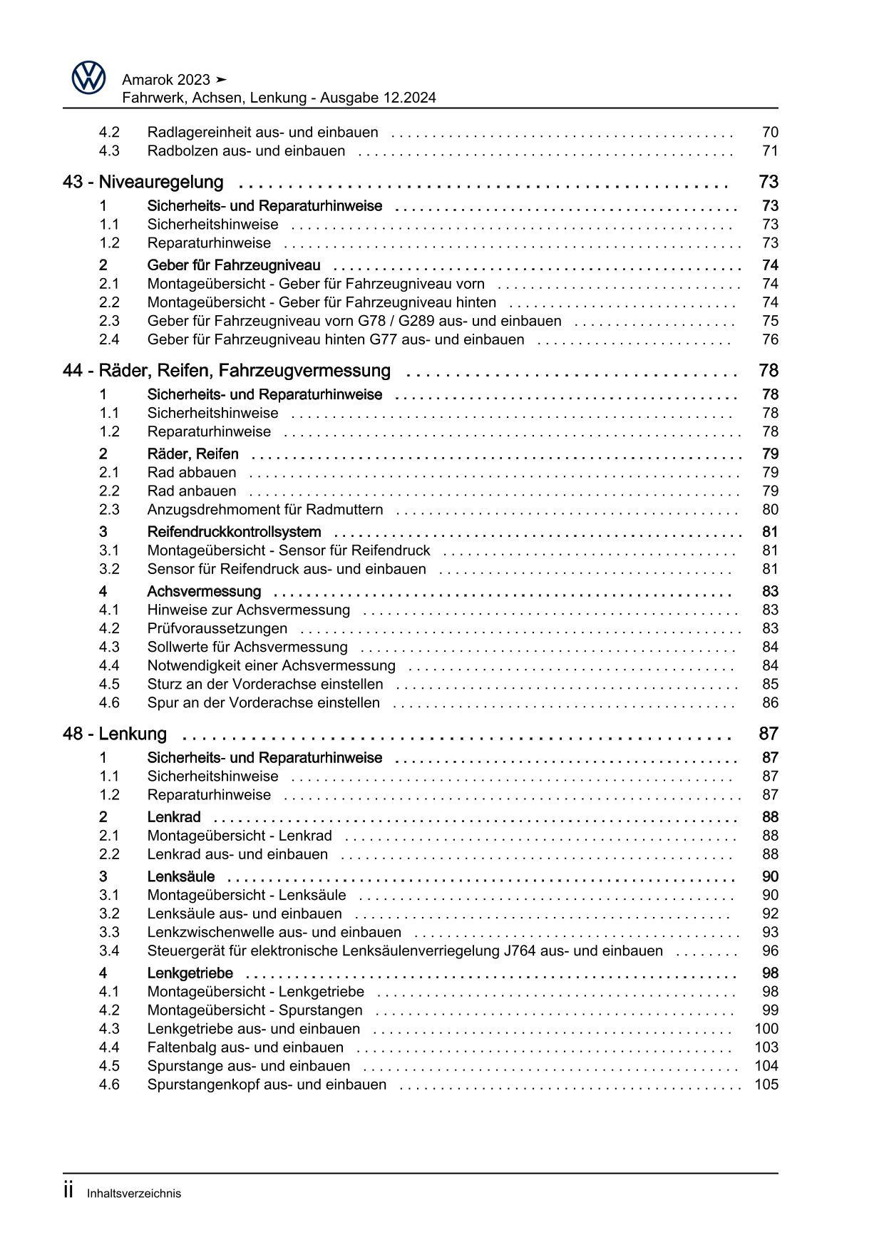 VW Amarok Typ T1 ab 2022 Fahrwerk Achsen Lenkung Reparaturanleitung
