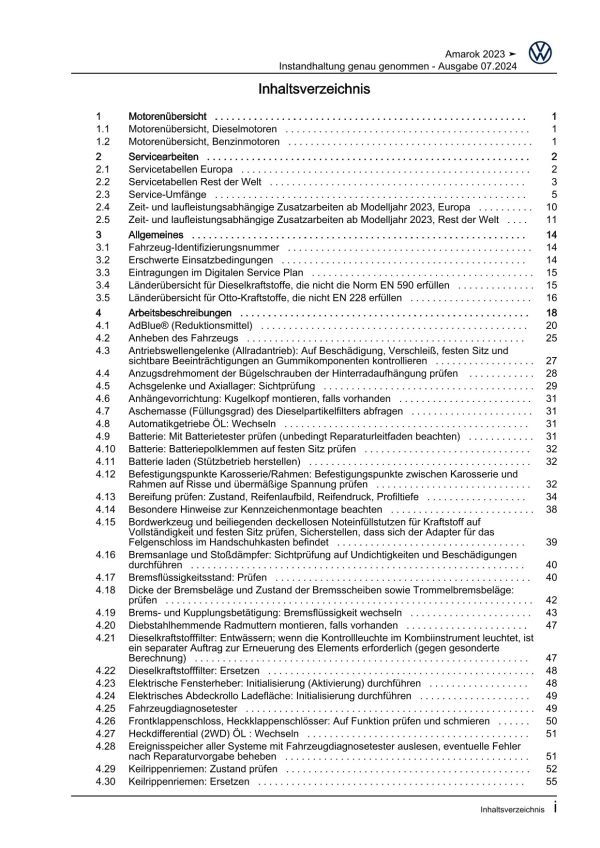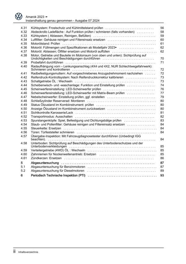 VW Amarok Typ T1 ab 2022 Instandhaltung Inspektion Wartung Reparaturanleitung