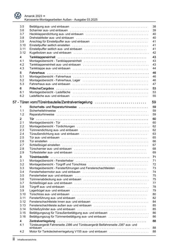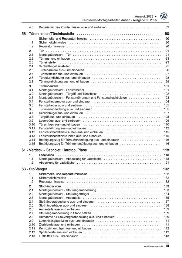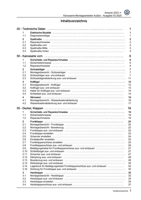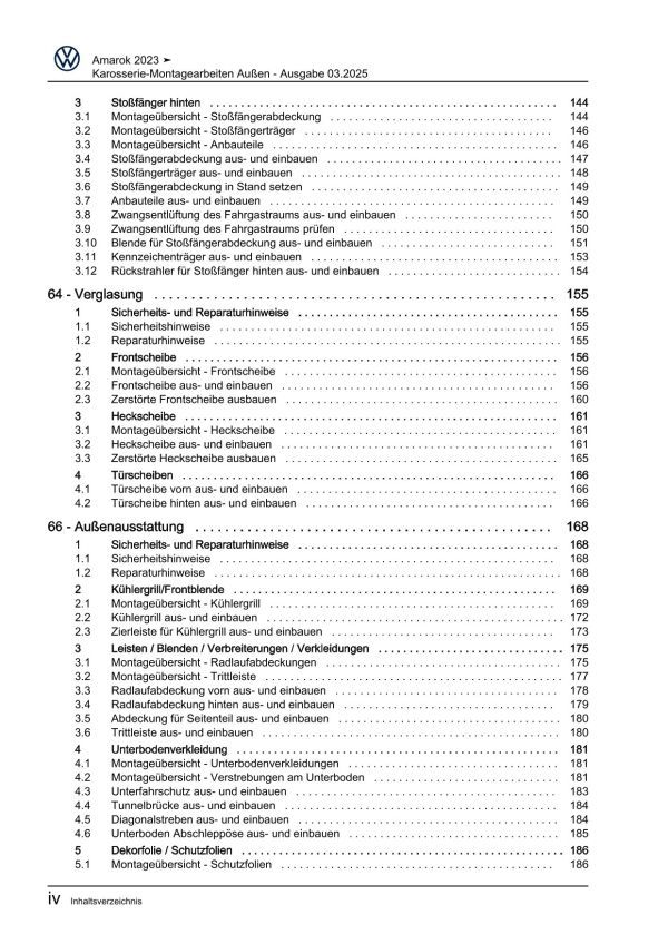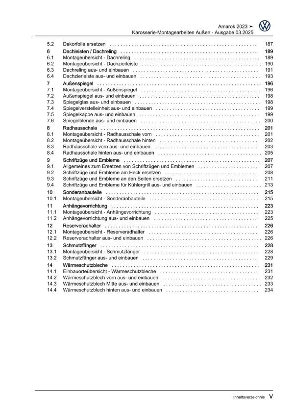 VW Amarok Typ T1 ab 2022 Karosserie Montagearbeiten Außen Reparaturanleitung