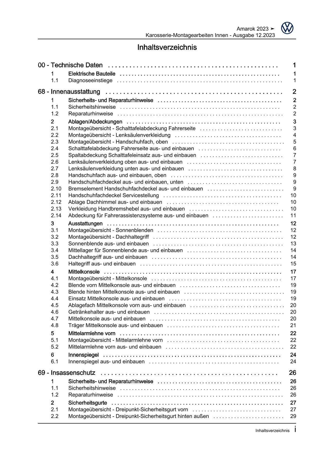 VW Amarok T1 ab 2022 Karosserie Montagearbeiten Innen Reparaturanleitung eBook