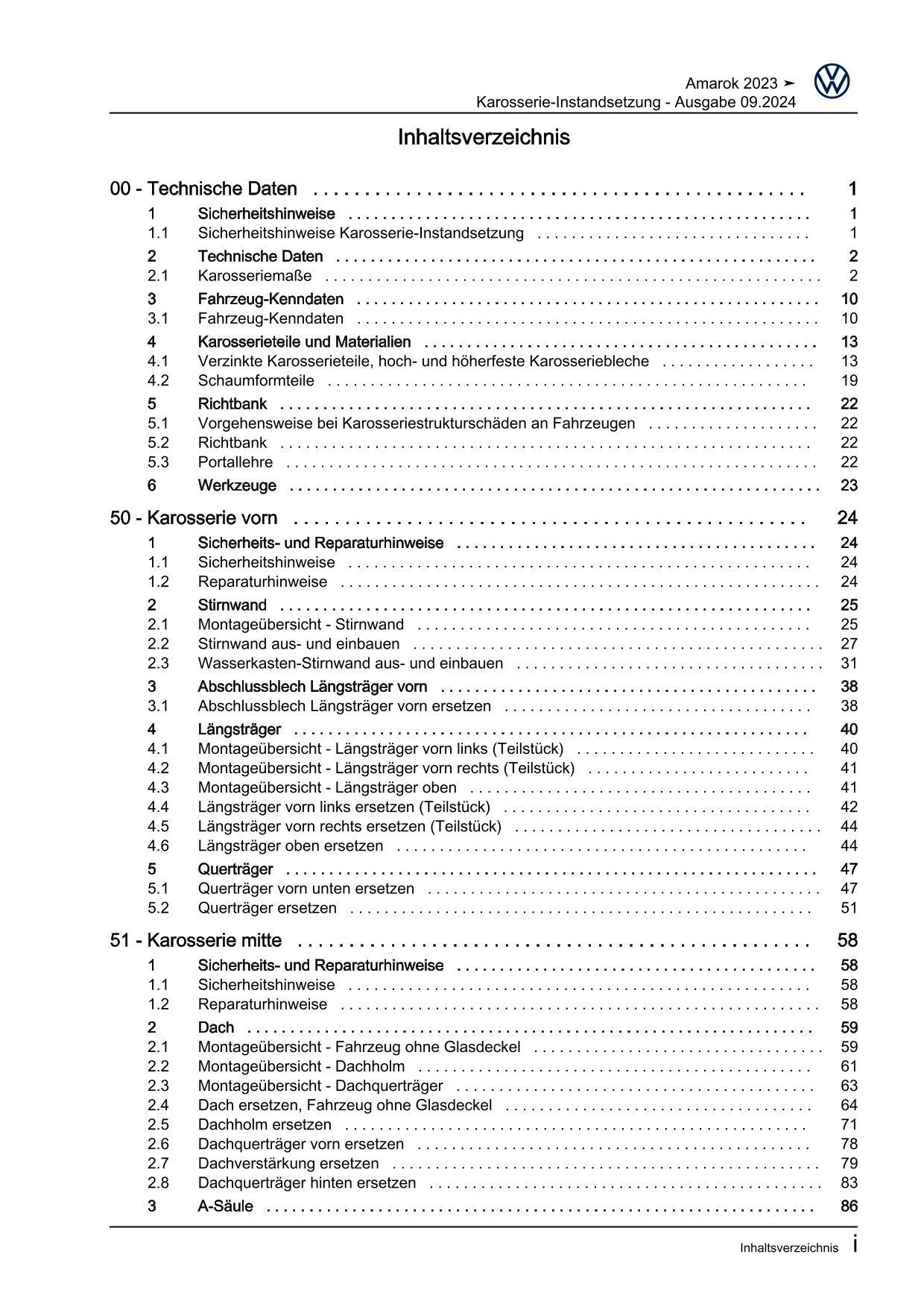 VW Amarok Typ T1 ab 2022 Allgemeine Informationen Karosserie Reparaturanleitung