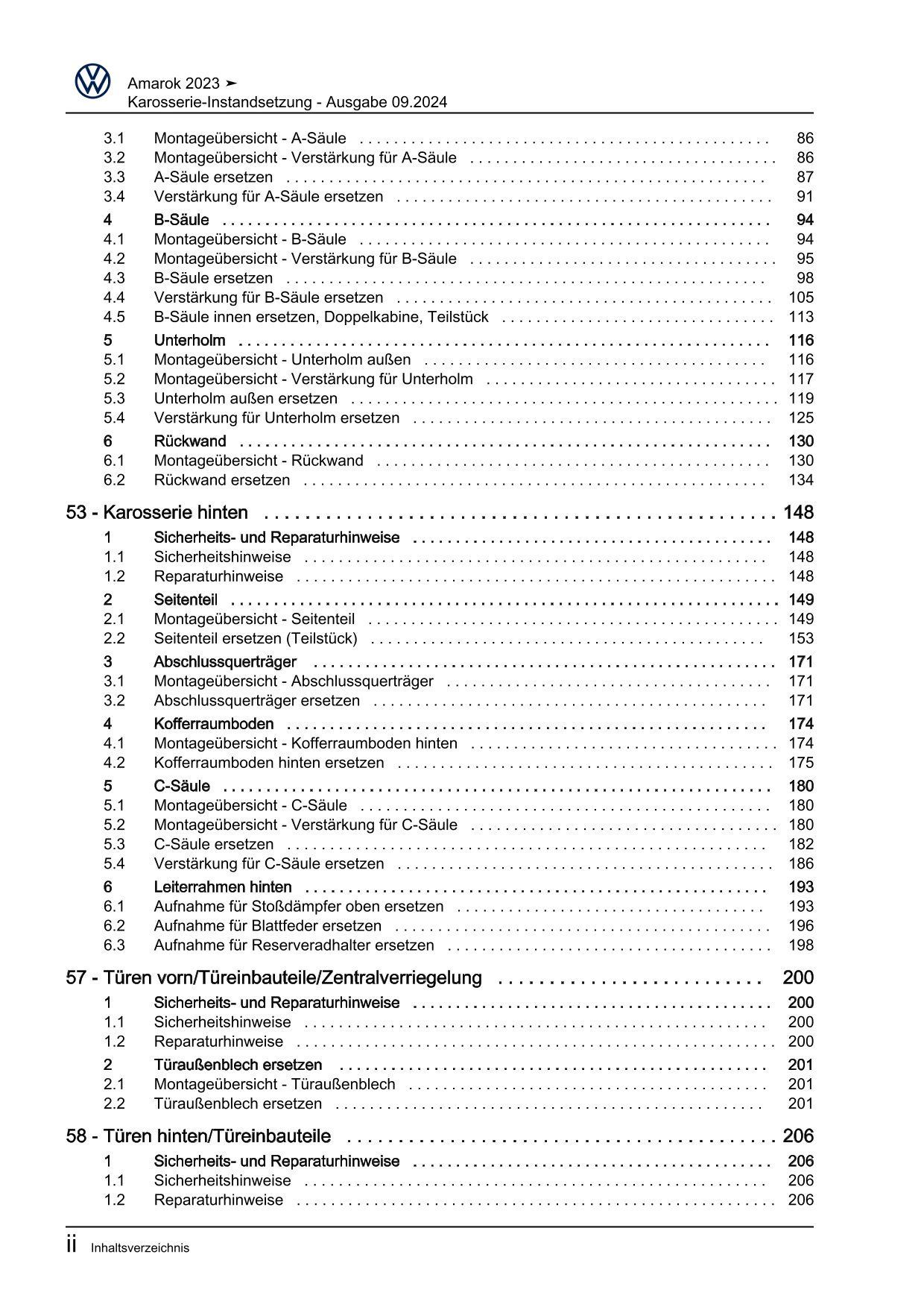 VW Amarok Typ T1 ab 2022 Karosserie Montagearbeiten Außen Reparaturanleitung