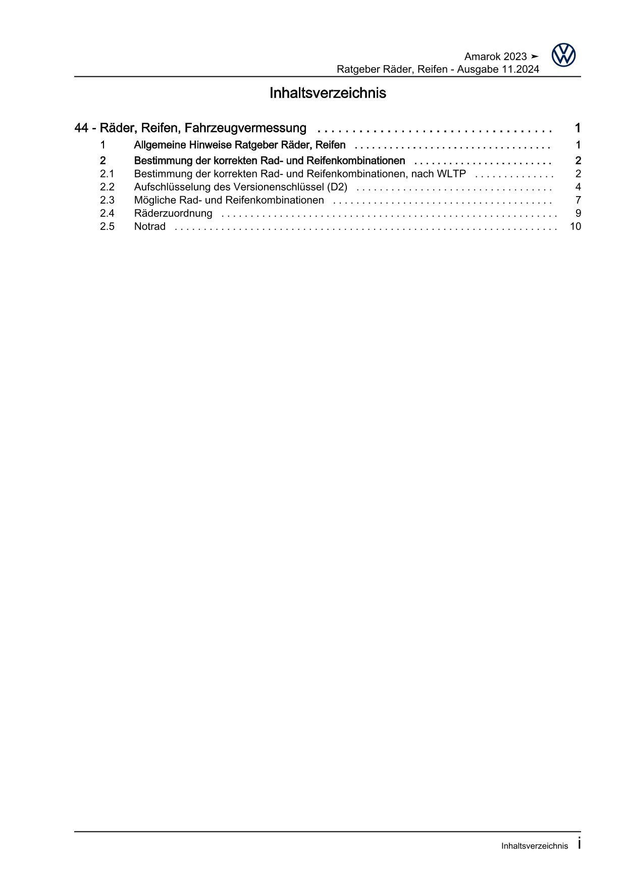 VW Amarok Typ T1 ab 2022 Ratgeber Räder und Reifen Reparaturanleitung