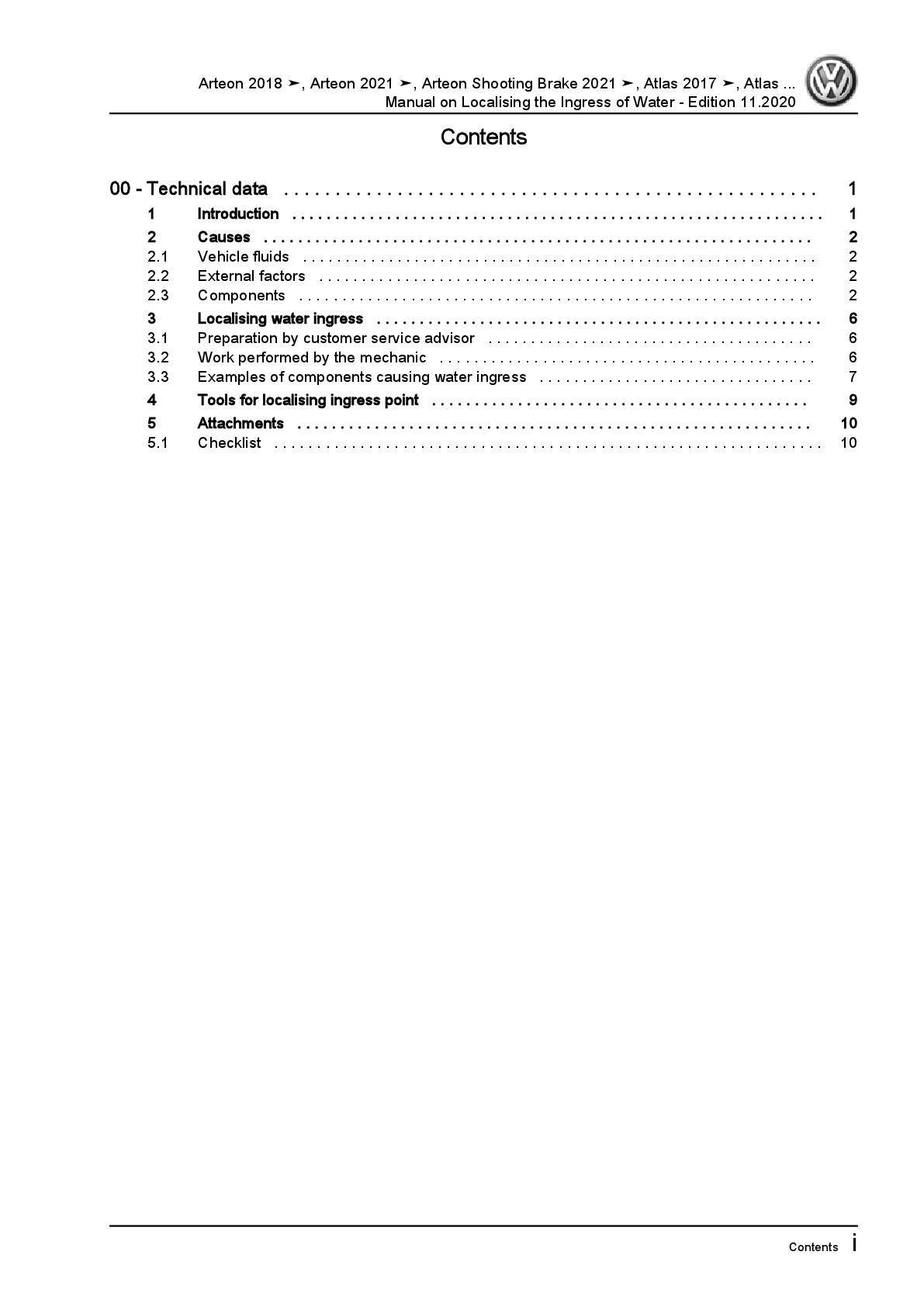 VW Arteon type 3H from 2020 localising the ingress of water repair manual pdf