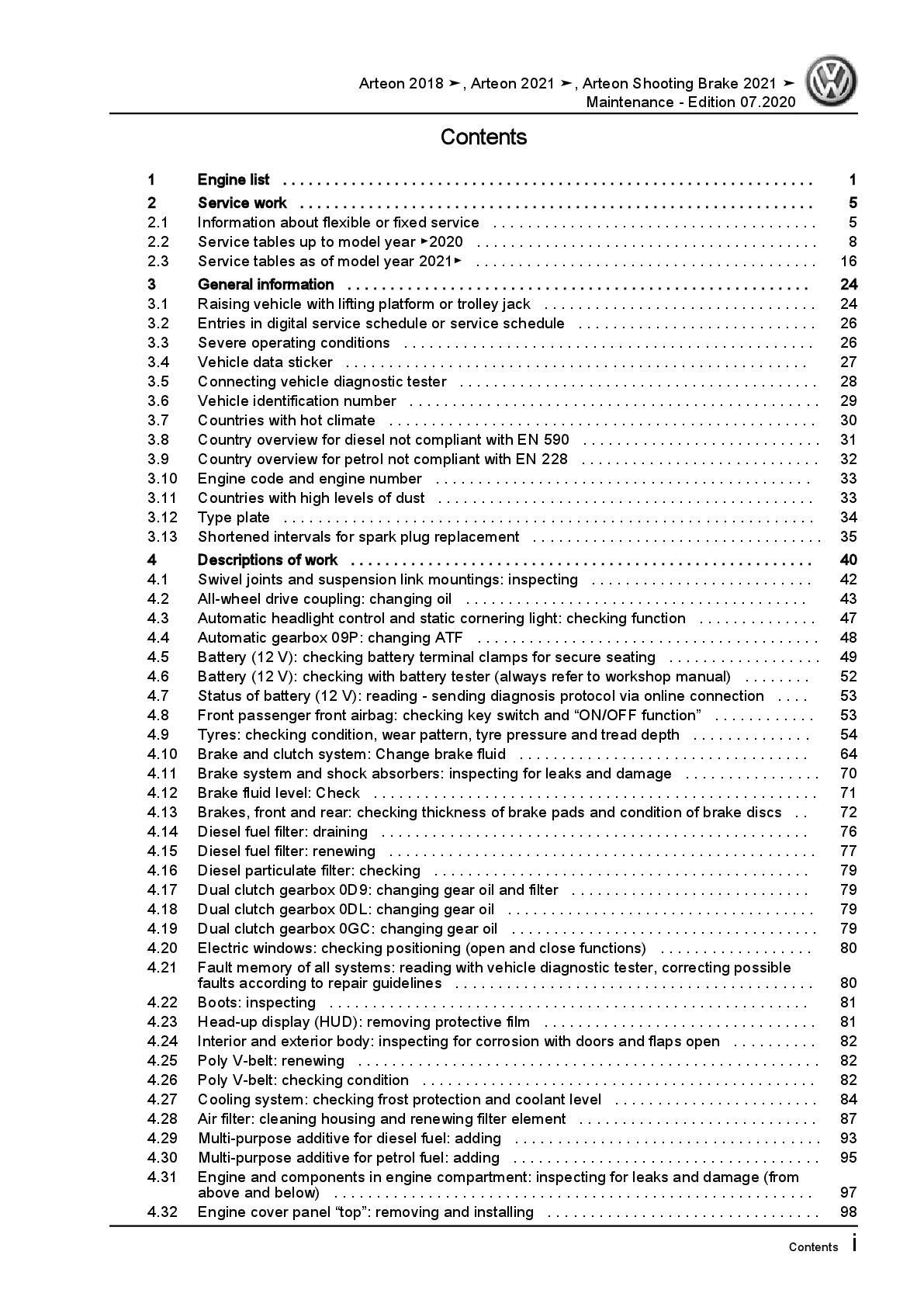 VW Arteon type 3H from 2020 maintenance repair workshop manual pdf file ebook