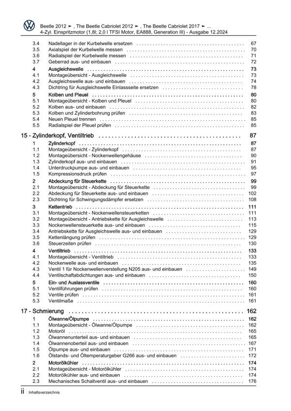 Inhalt/Thema: 4-Zylinder Einspritzmotor (TFSI, EA888, Generation III) Kraftstoffart: Benzin Motorkennbuchstaben (MKB): CPLA, CPPA, CPKA, CPRA, CULC Motorleistung in kW/PS: 125, 155, 162 kW / 170, 211, 220 PS Hubraum: 1,8l und 2,0l Bitte achten Sie vor einem Kauf auf das Baujahr und den Motorkennbuchstaben in der Artikelbeschreibung. Falls Ihr Motorkennbuchstabe nicht aufgeführt ist, ist das Buch nicht für Ihr Fahrzeug geeignet. Kontaktieren Sie uns gerne, um die passenden Dokumente ...