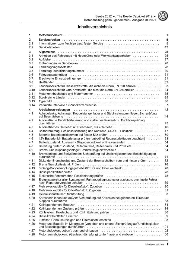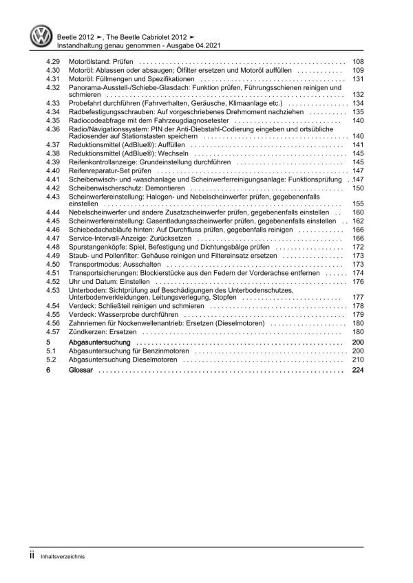 VW Beetle Cabrio 5C (11-16) Instandhaltung Inspektion Wartung Reparaturanleitung