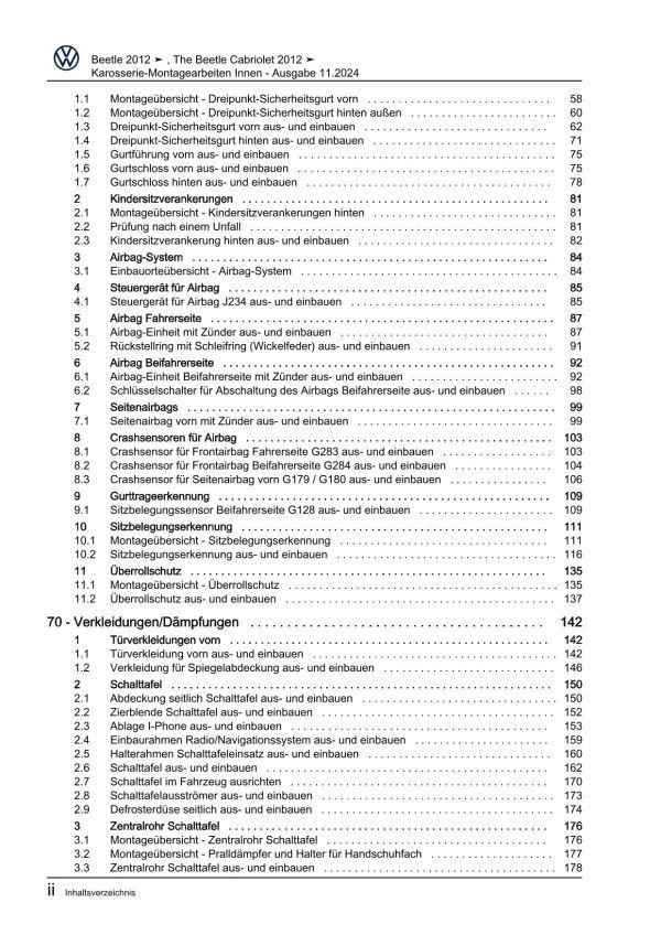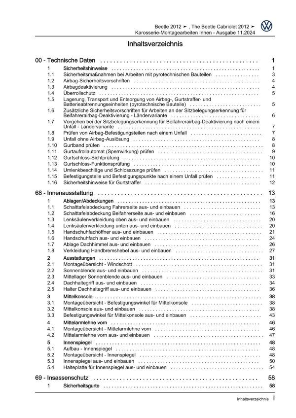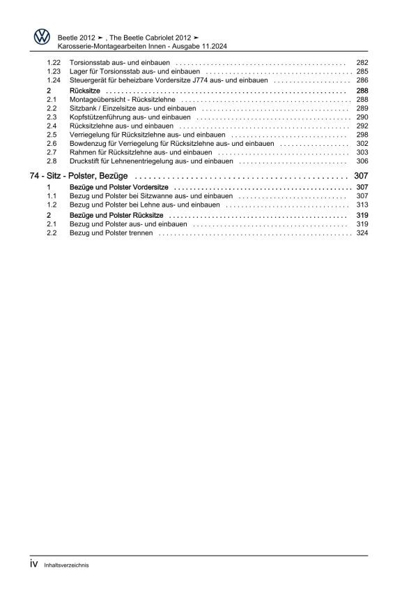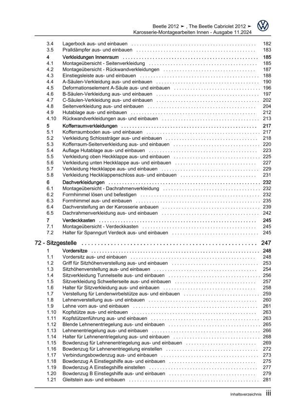 VW Beetle Cabrio 5C (11-16) Karosserie Montagearbeiten Innen Reparaturanleitung
