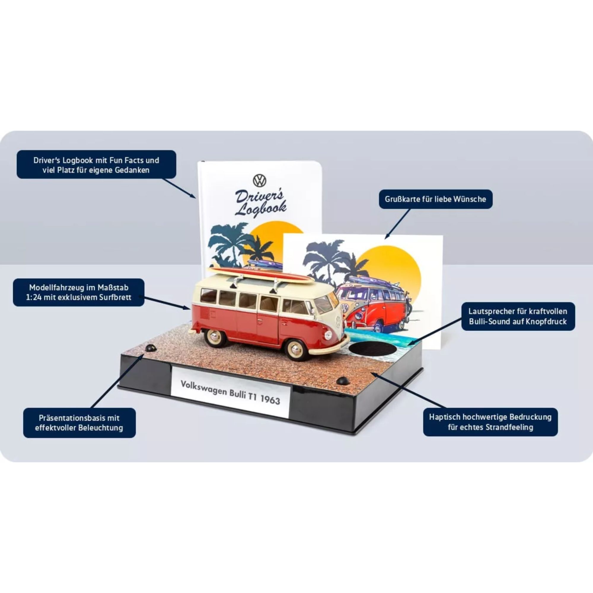 VW Bulli Bus Transporter T1 1963 Maßstab 1:24 Modellauto Podest Franzis Verlag