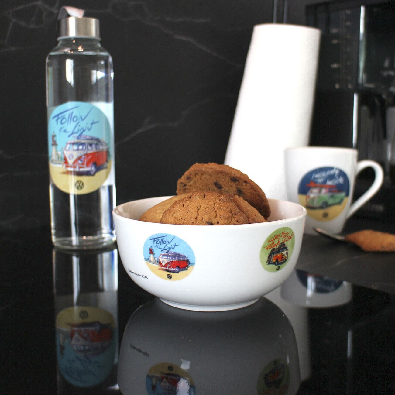 Wunderschöne Müslischalen aus Keramik mit Bulli Motiven Die VW Müslischalen verströmen schon am Frühstückstisch sommerliche Urlaubs Vibes. Die Keramikschale hat ein Fassungsvermögen von 500ml und bietet jede Menge Platz für eine große Portion von deinem Lieblingsmüsli am Morgen. Genieße dein Müsli o