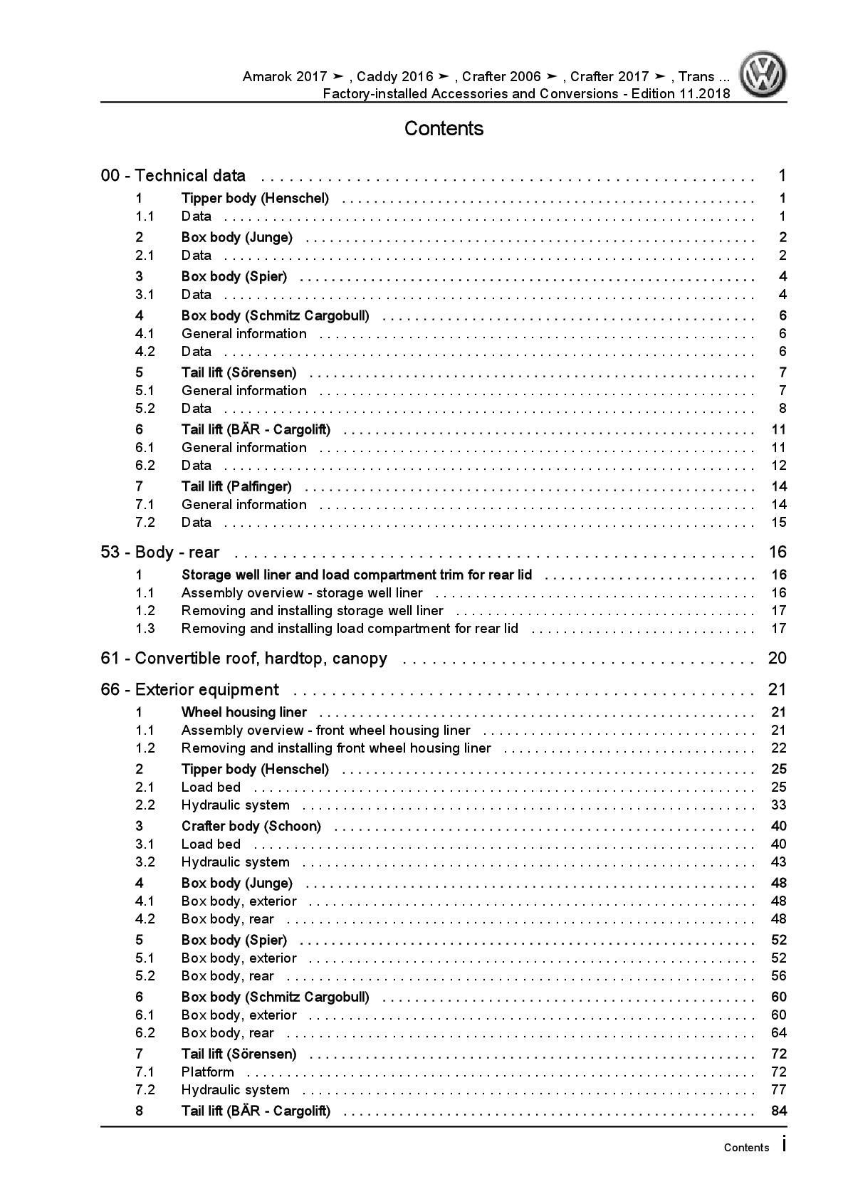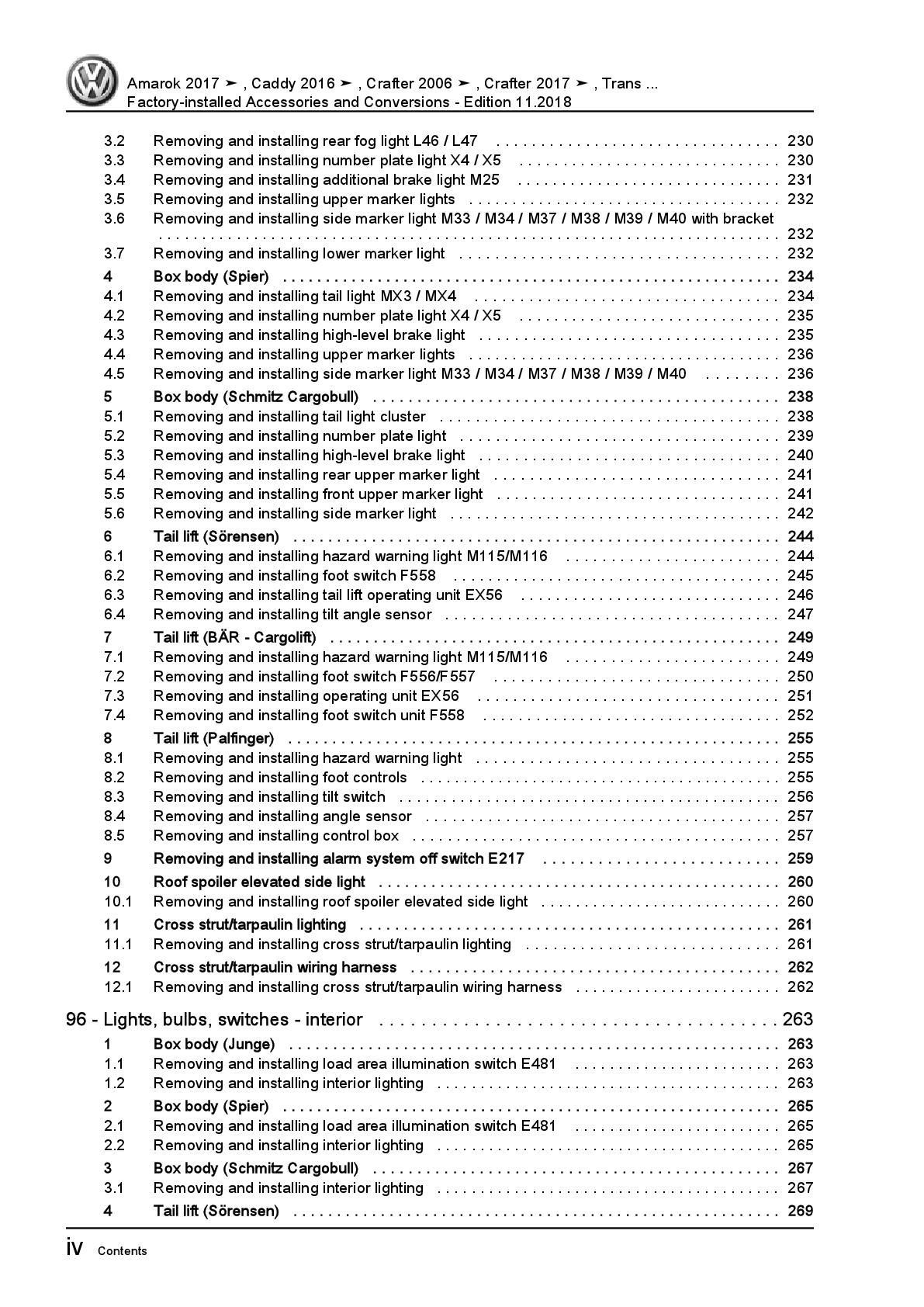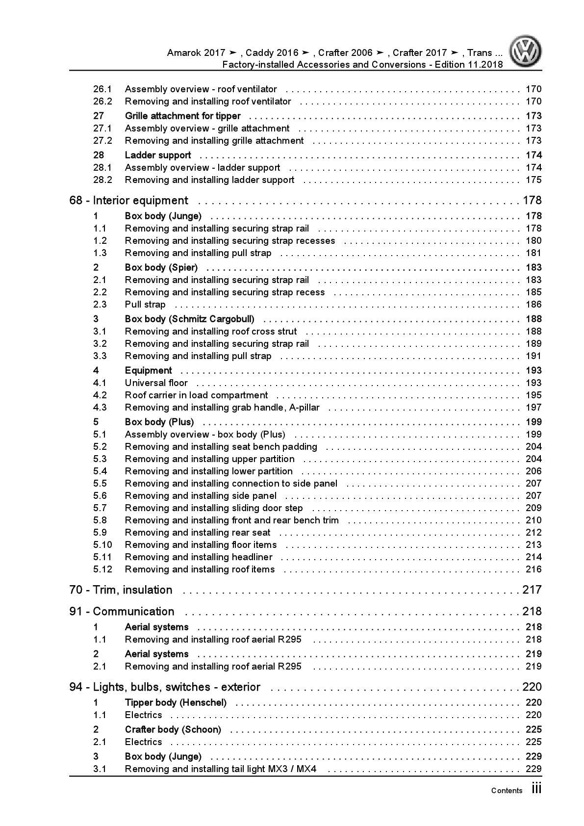 VW Caddy SA (15-20) factory installed accessories conversions repair manual pdf