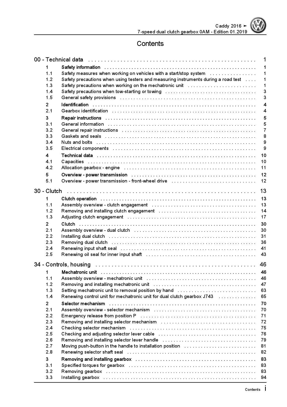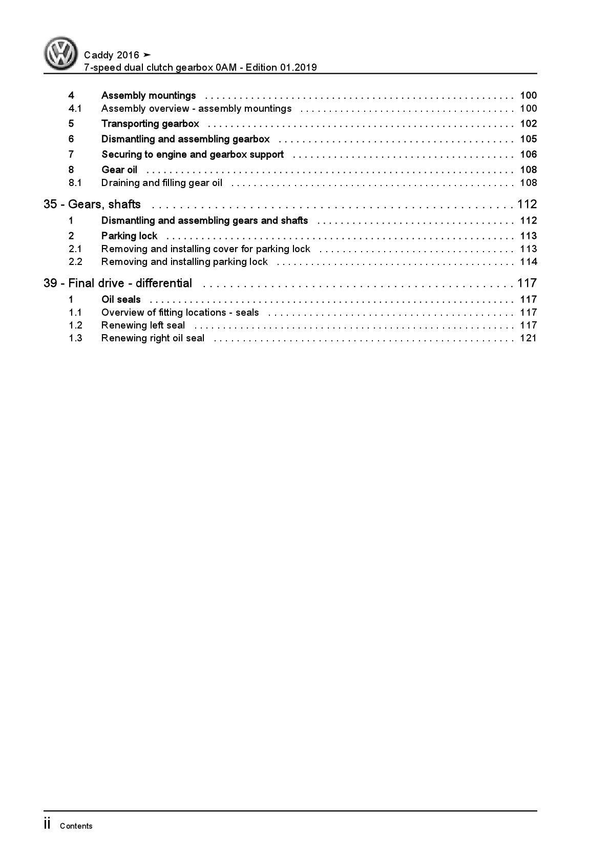 VW Caddy SA 2015-2020 7 speed dual clutch gearbox 0AM repair workshop manual pdf
