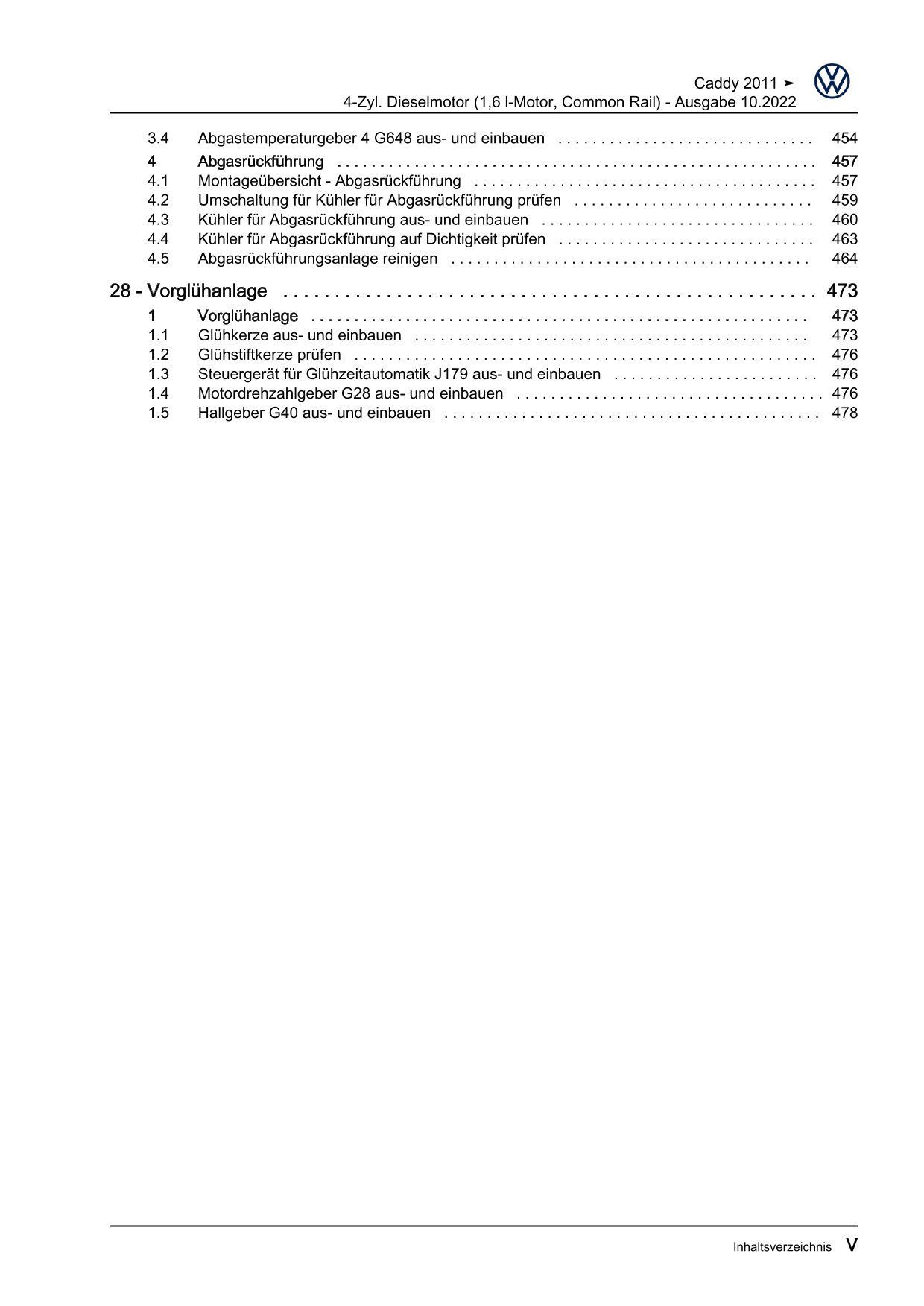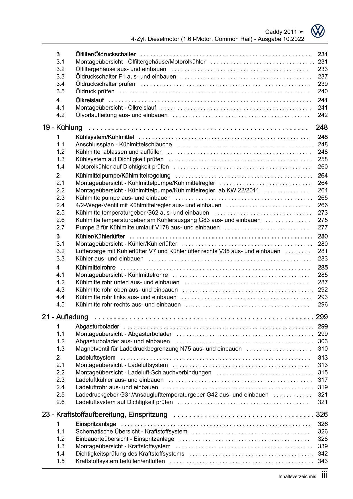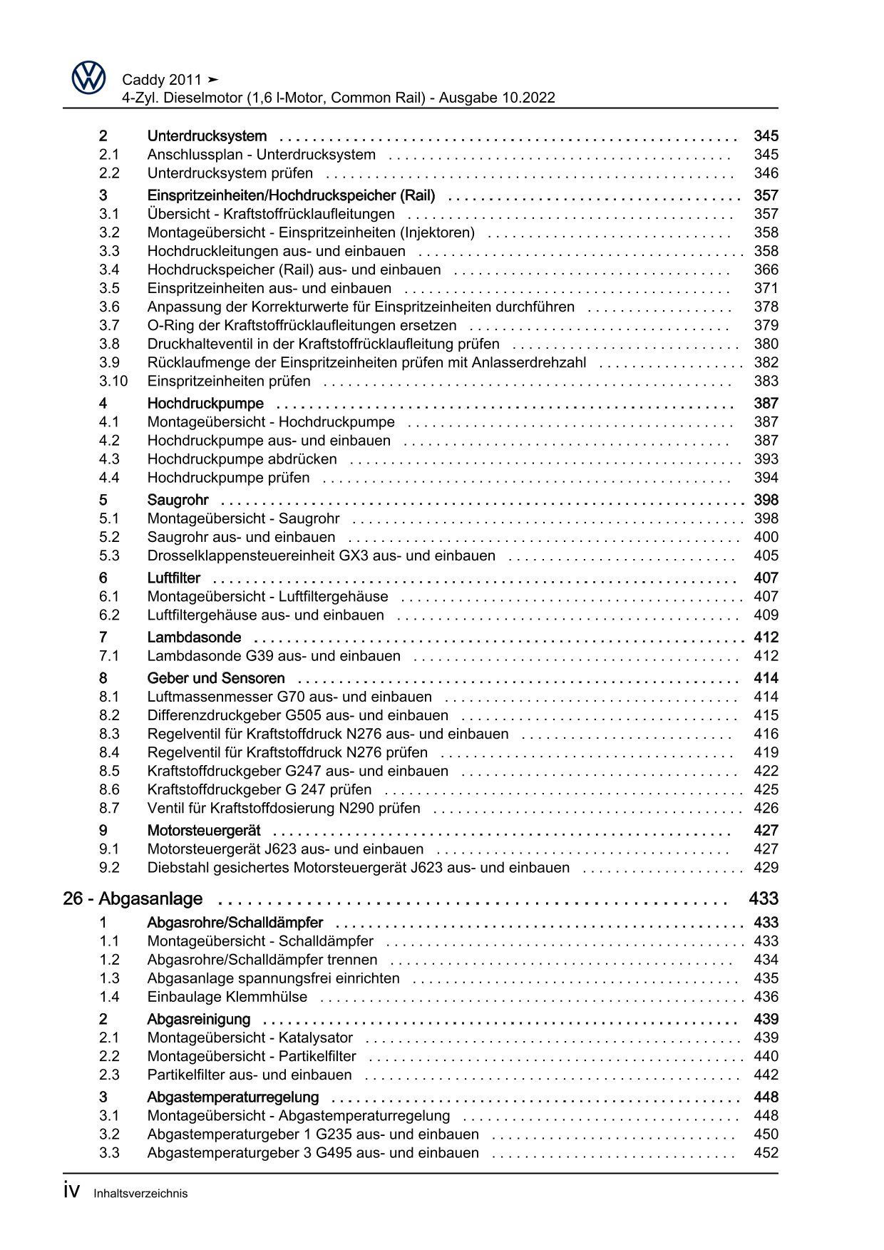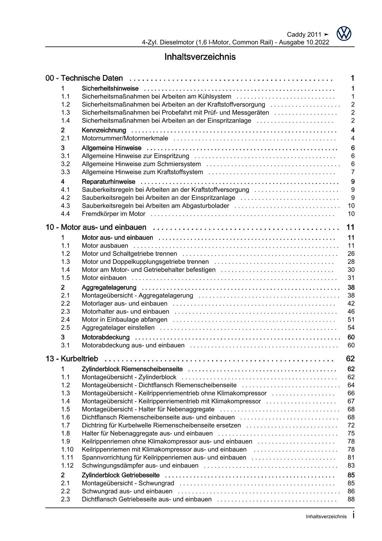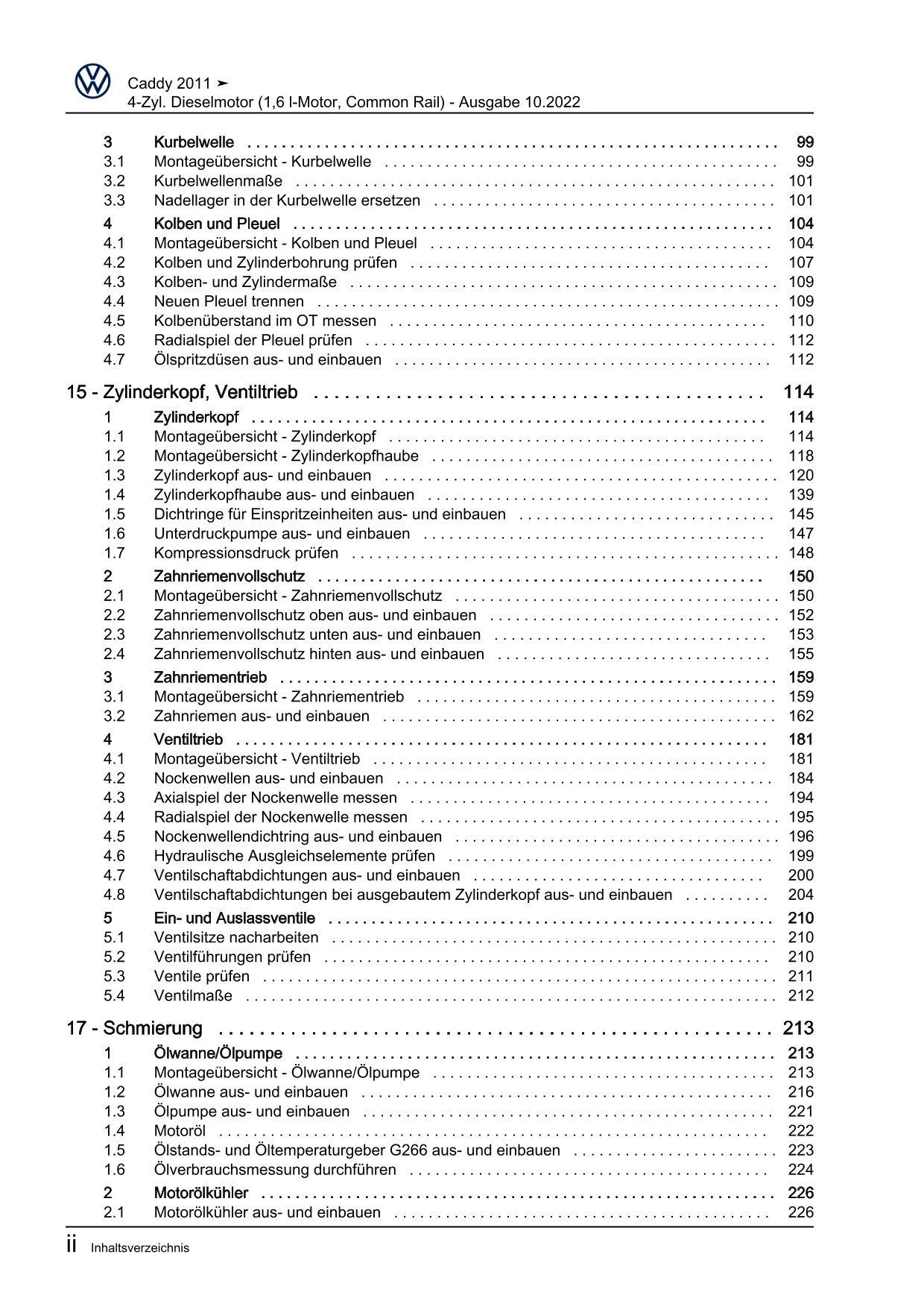 VW Caddy Typ 2C 2010-2015 4-Zyl. Dieselmotor 1,6l 75-102 PS Reparaturanleitung