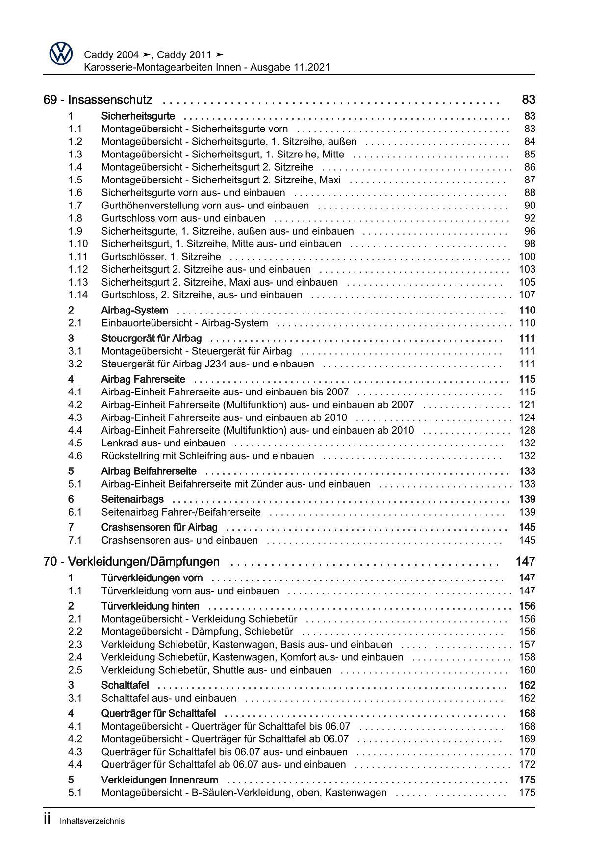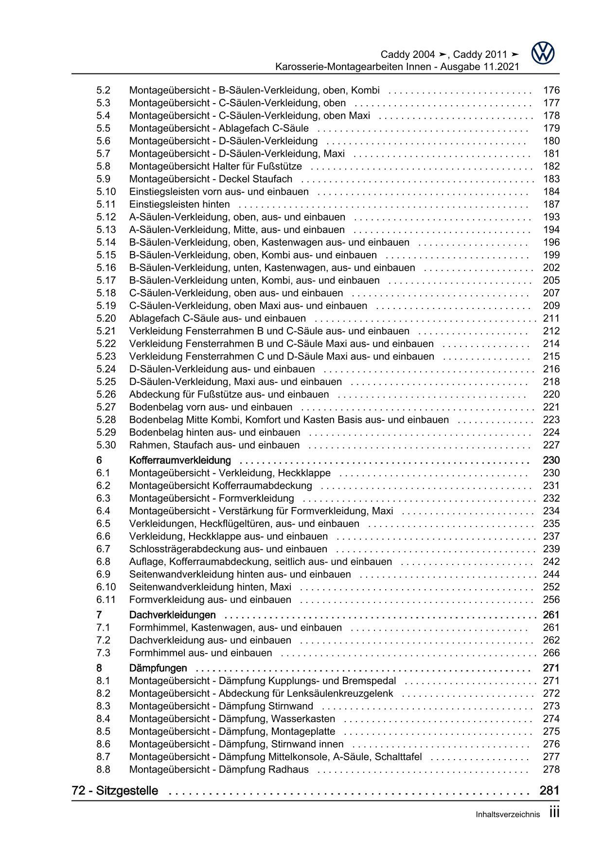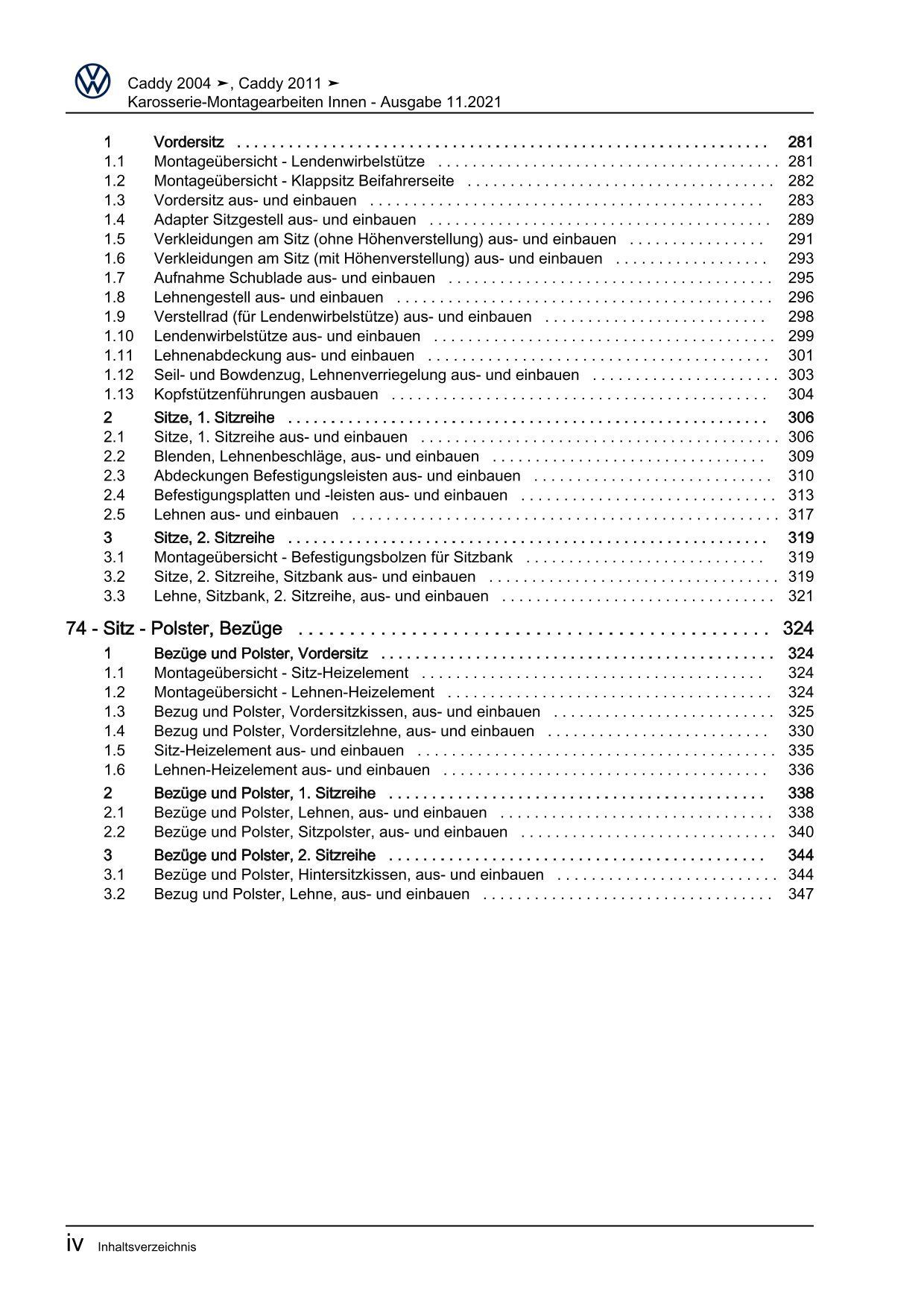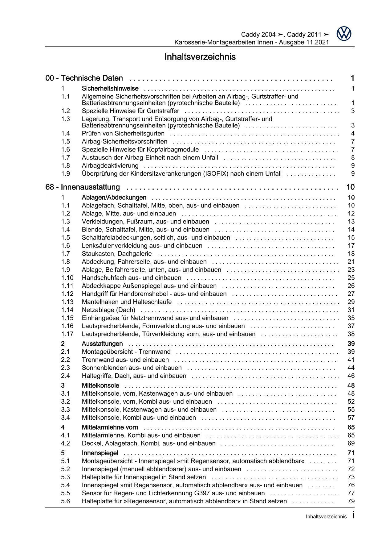 VW Caddy Typ 2C 2010-2015 Karosserie Montagearbeiten Innen Reparaturanleitung