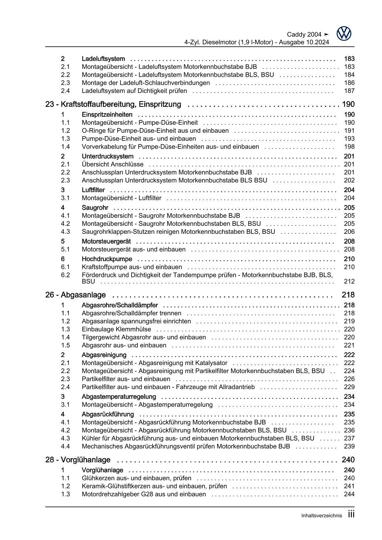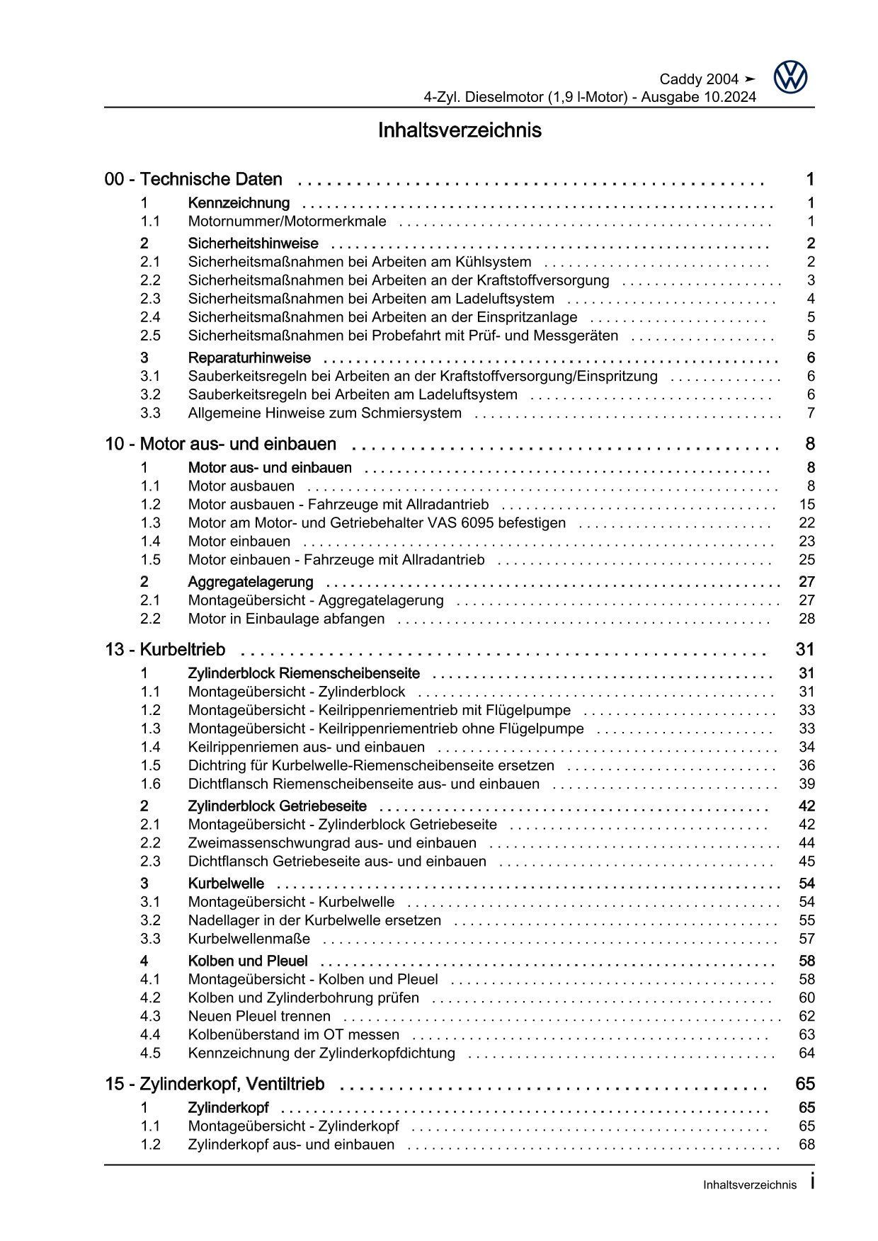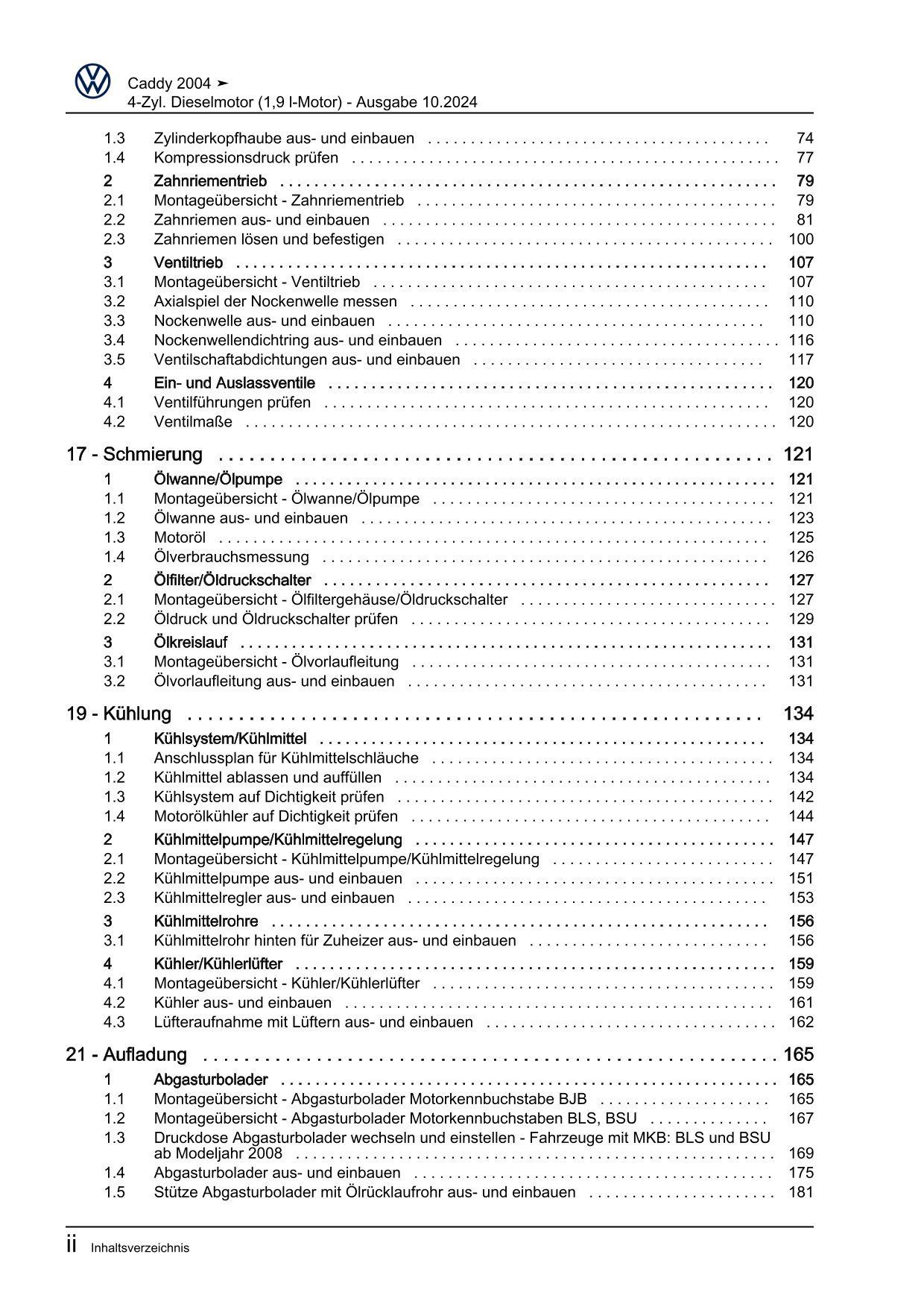 VW Caddy Typ 2K 2003-2010 4-Zyl. Dieselmotor 1,9l 75-105 PS Reparaturanleitung