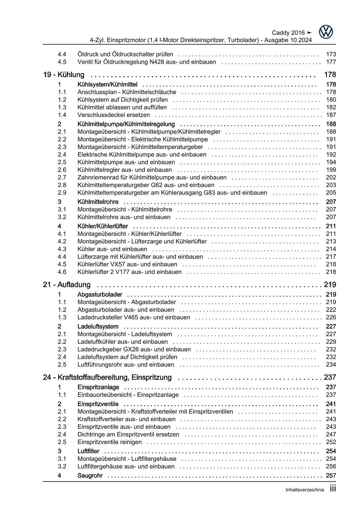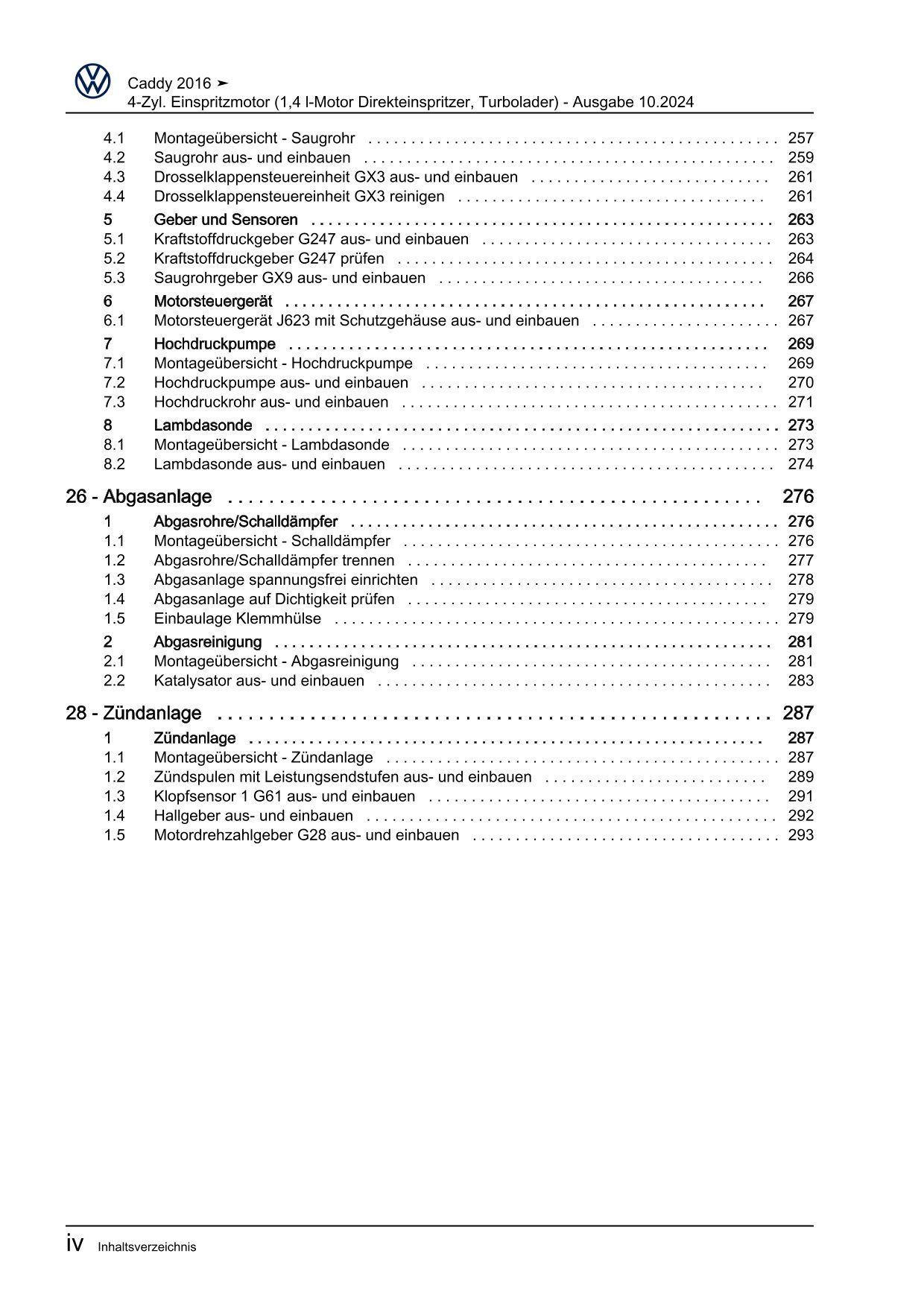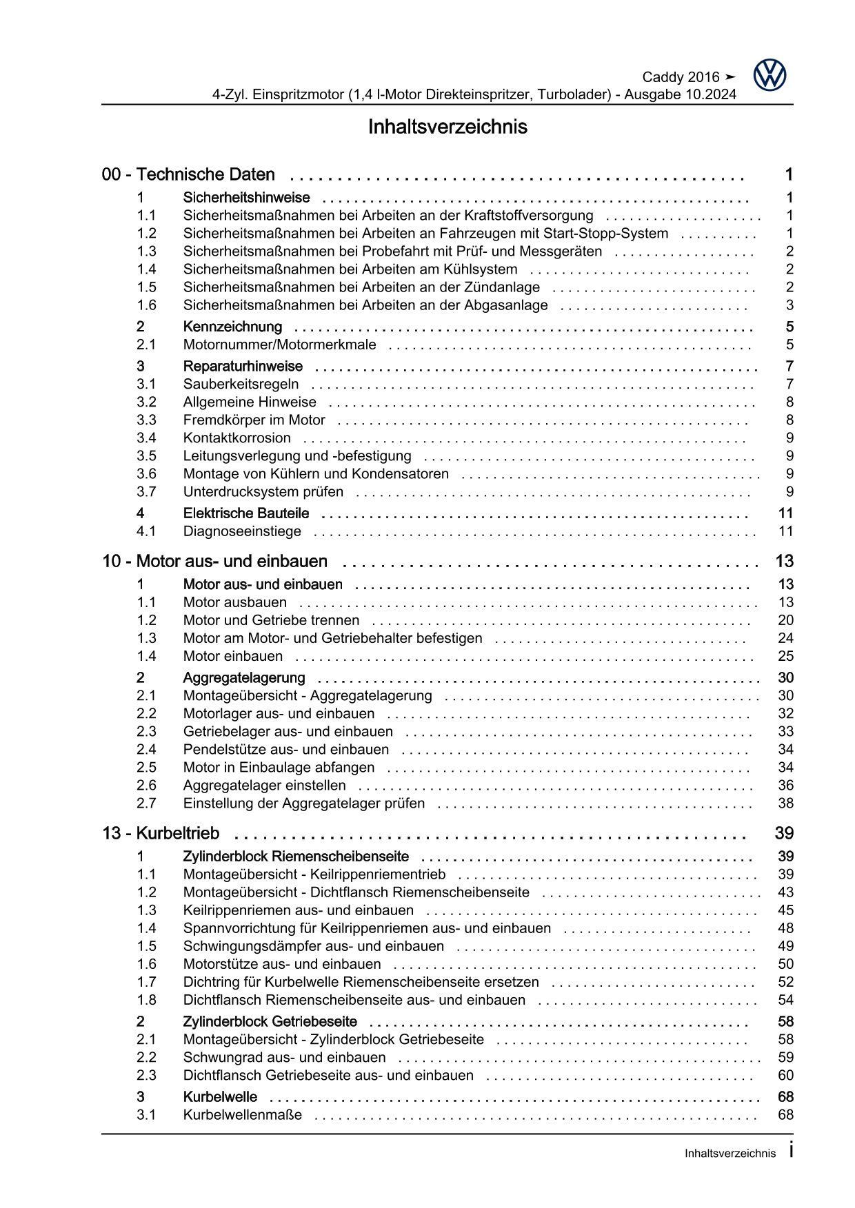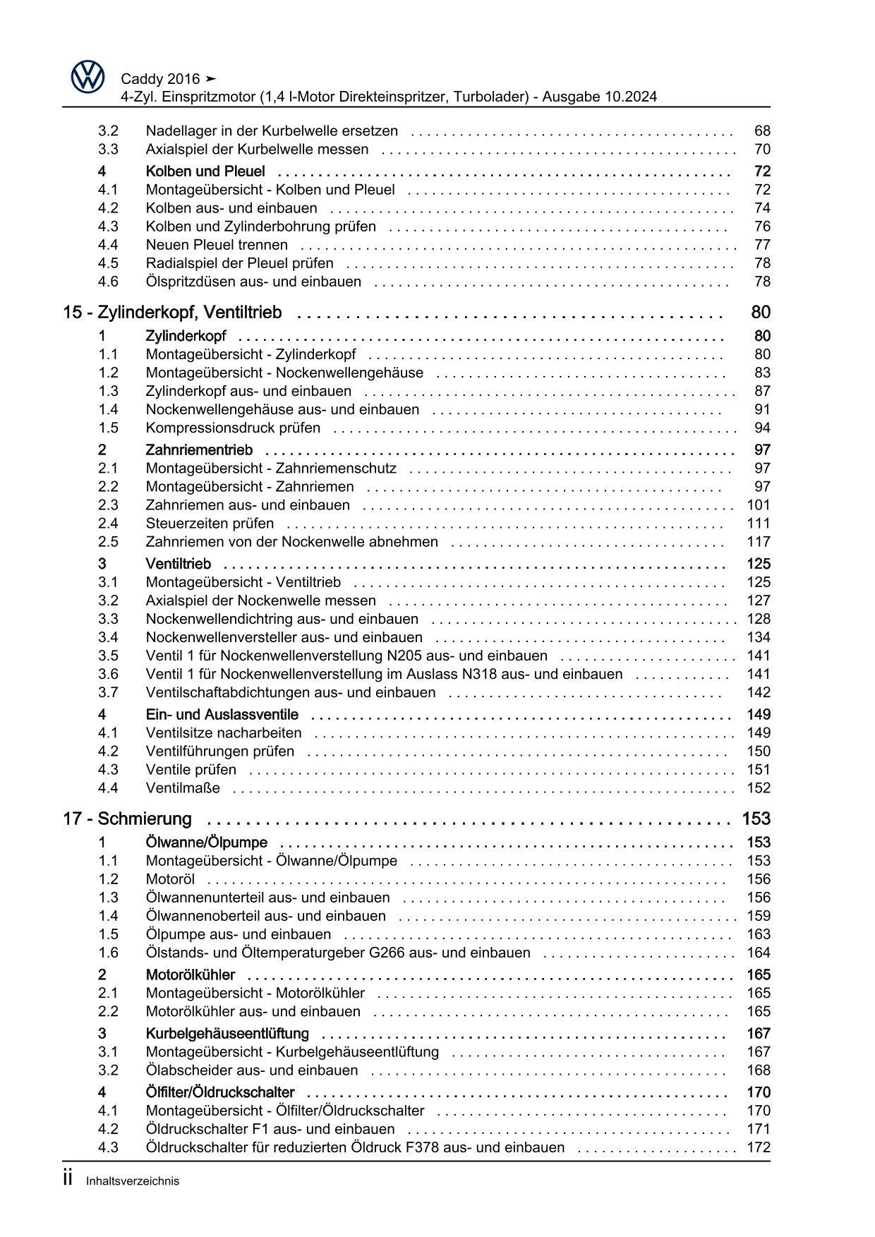 VW Caddy Typ SA 2015-2020 4-Zyl. 1,4l Benzinmotor 125-130 PS Reparaturanleitung