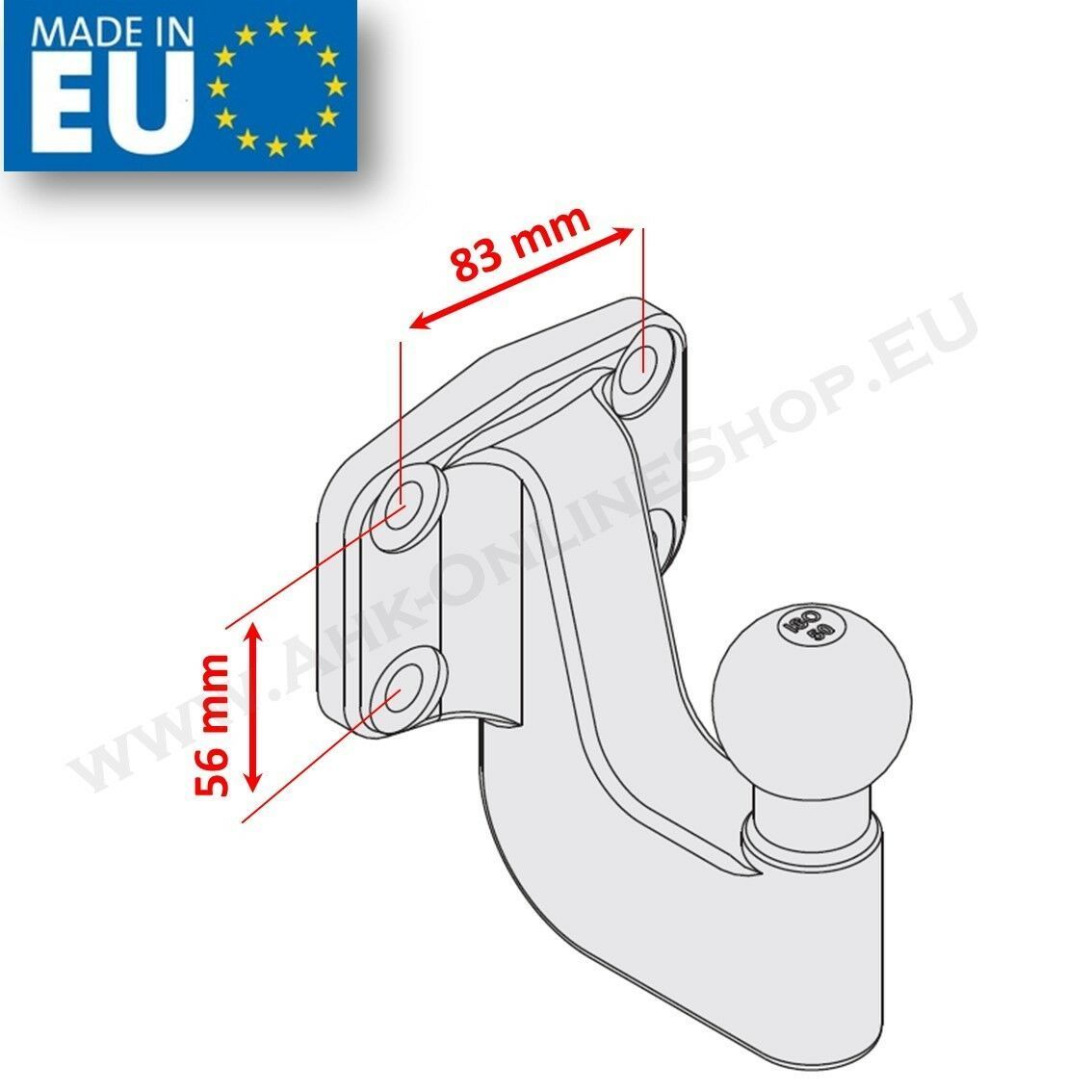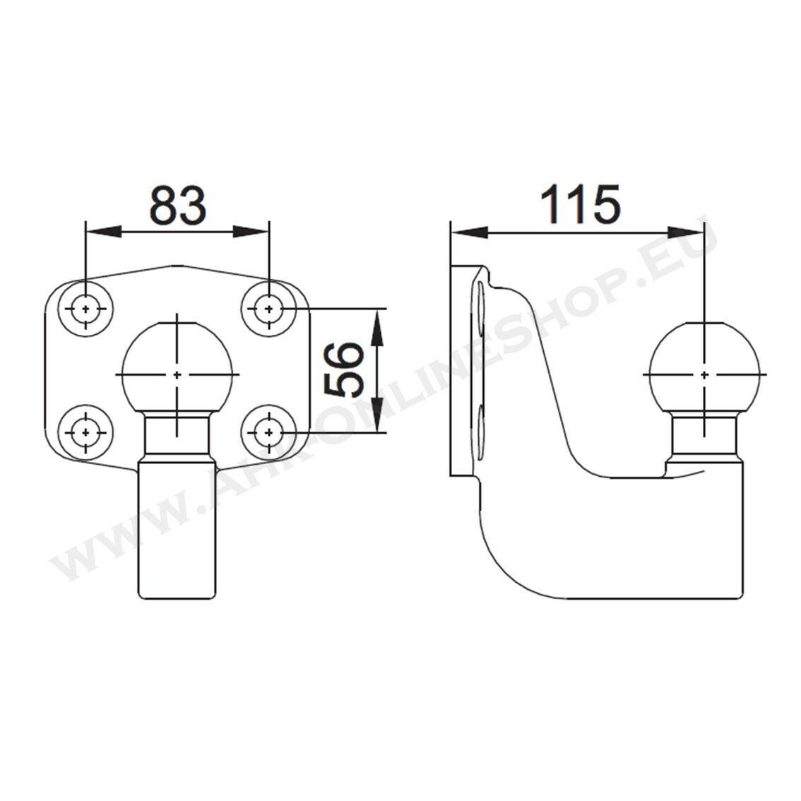 VW Crafter 30-35 Bus 3500 kg Anschraubplatte 83x56mm Kugelkopf AHK Anhängebock