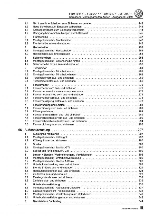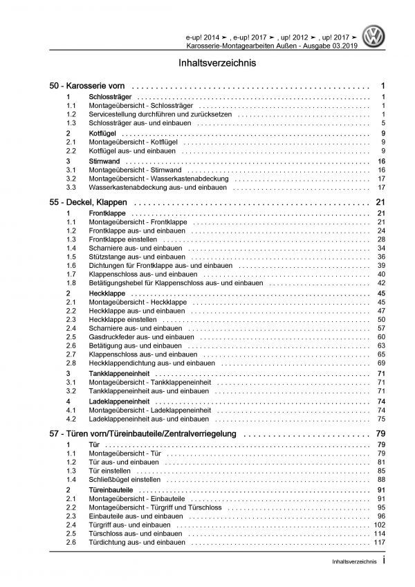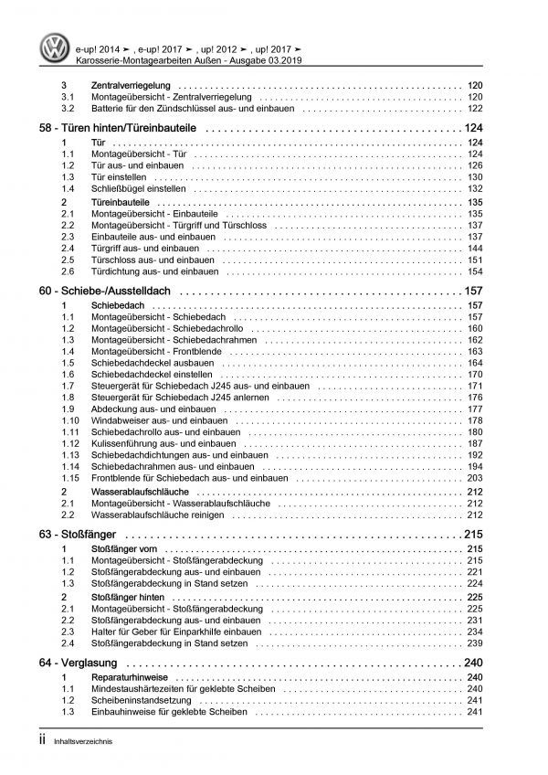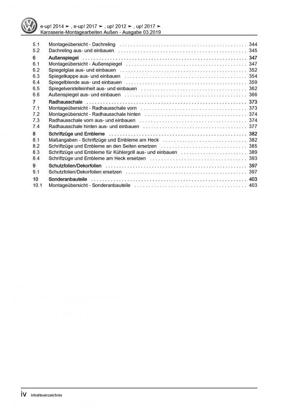 VW e-Up! Typ BL2 ab 2016 Karosserie Montagearbeiten Außen Reparaturanleitung