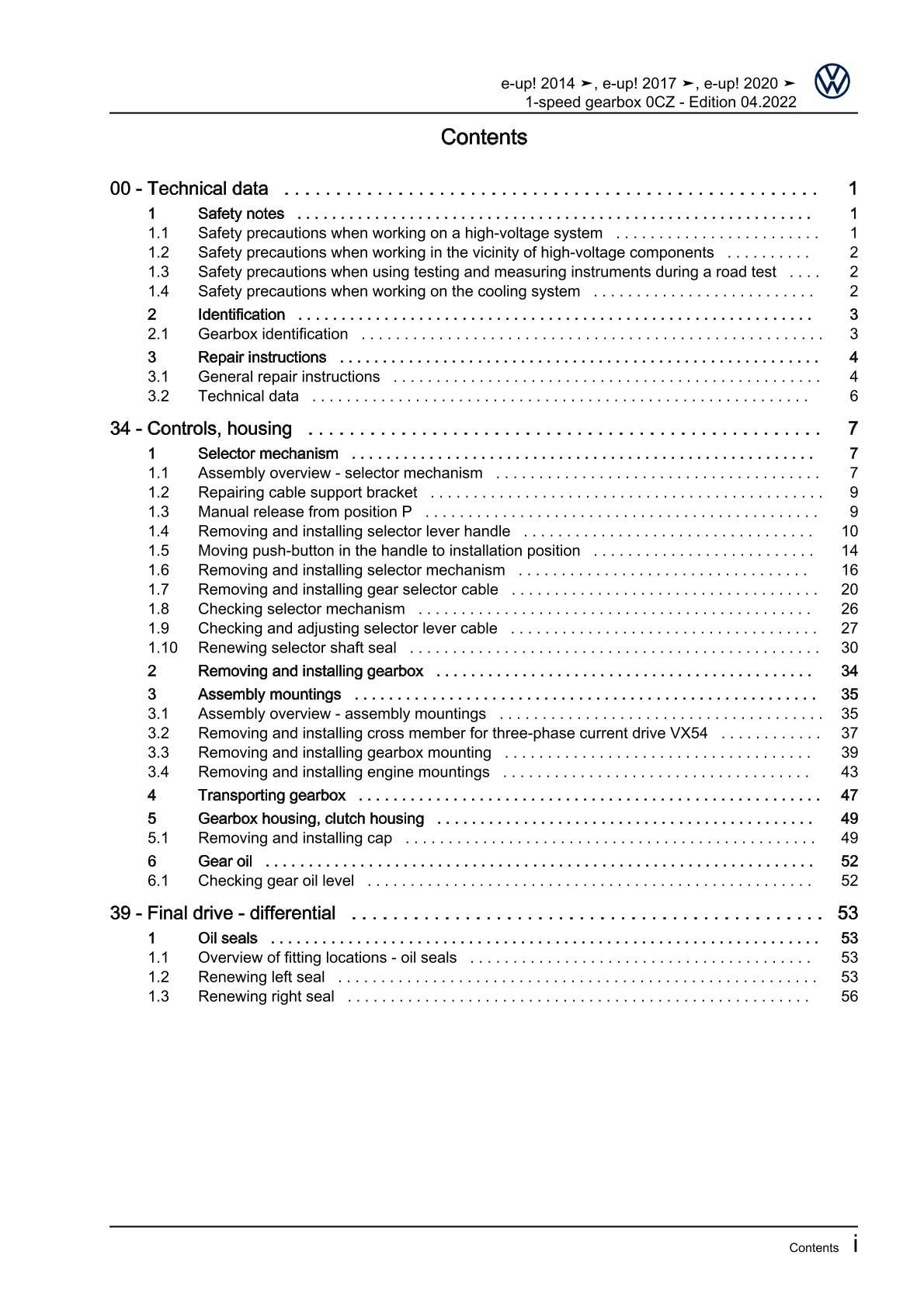 VW eUp! type BL2 from 2016 1 speed automatic gearbox 0CZ repair workshop manual