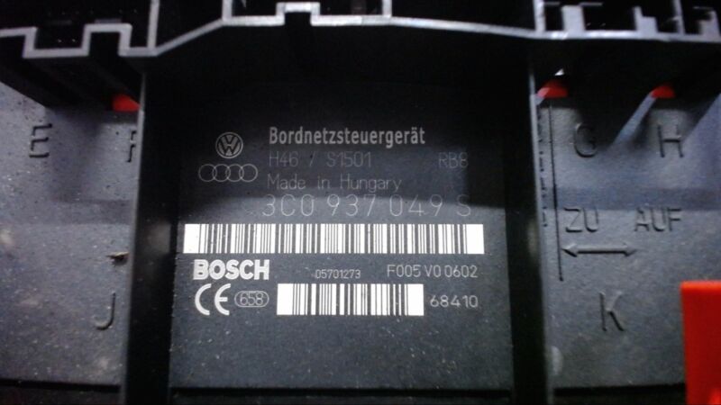 Artikelbeschreibung Ersatzteilbezeichnung Bordnetzsteuergerät Baugruppe Steuergeräte Interne Referenz Nr. 14885 Verkaufspreis in € 69,90 zusätzliche Informationen zum Ersatzteil Hersteller BOSCH OE-Teilenummer 3C0937049S Fahrzeugdaten Hersteller VW Baureihe Golf TDI Comfortline Kraftstoff Diesel Auf