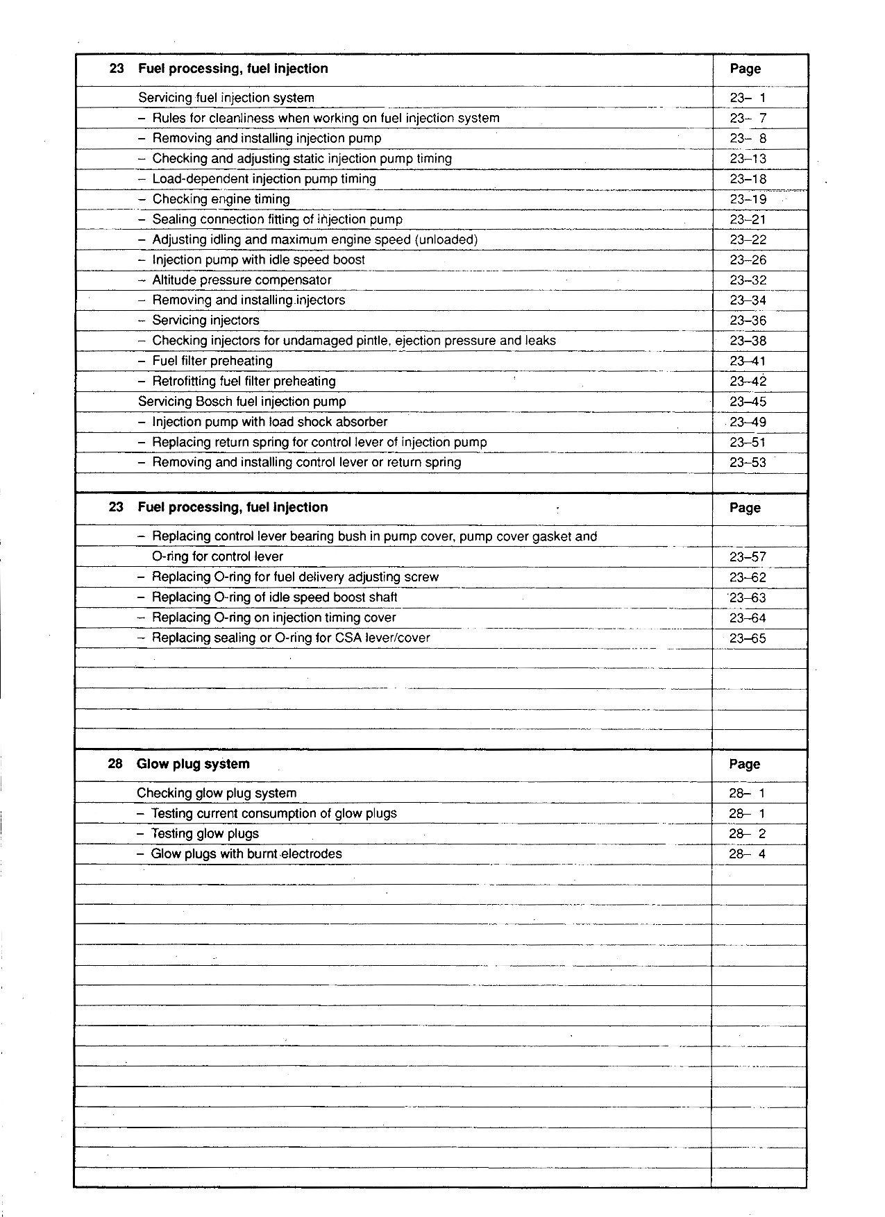 VW Golf 2 19 1984-1992 diesel injection glow plug system repair manual eBook