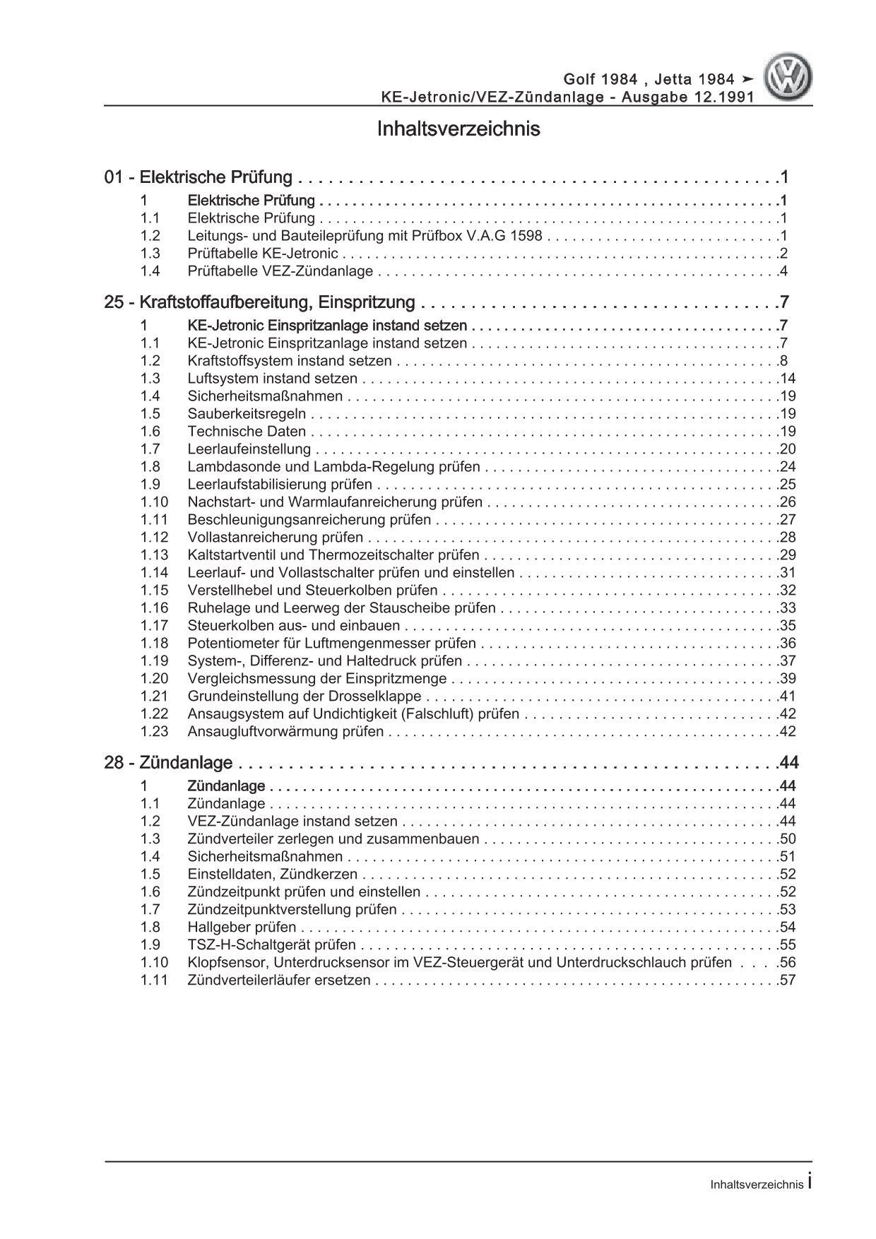 VW Golf 2 Typ 19 1983-1992 KE-Jetronic- VEZ-Zündanlage 129 PS Reparaturanleitung