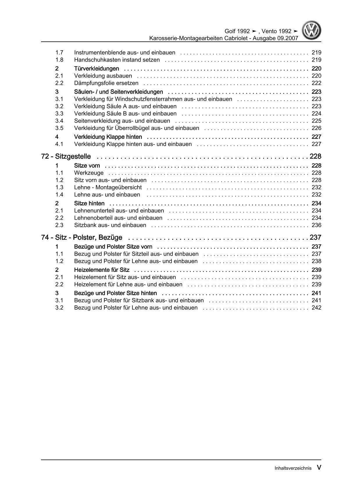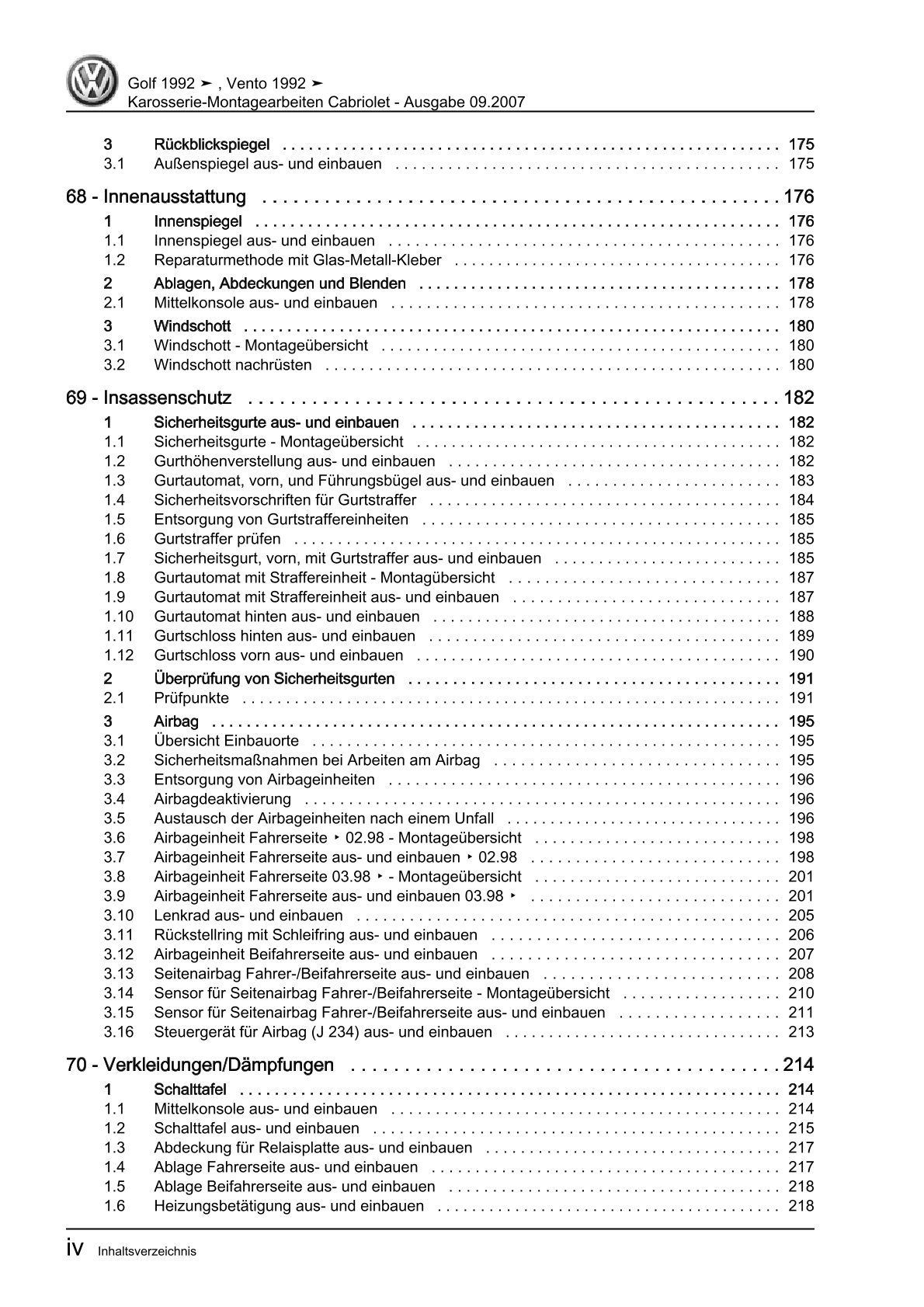 VW Golf 3 Cabrio Typ 1E Karosseriearbeiten Innen Außen Reparaturanleitung eBook
