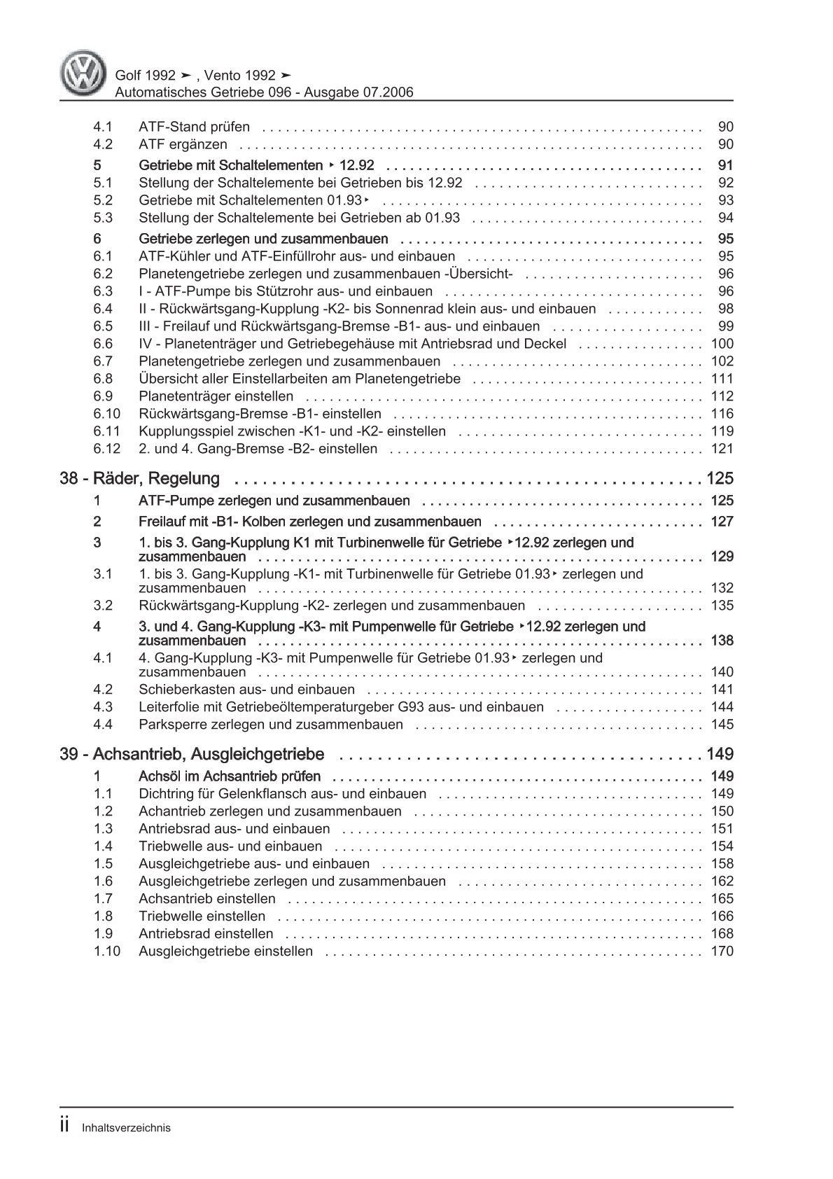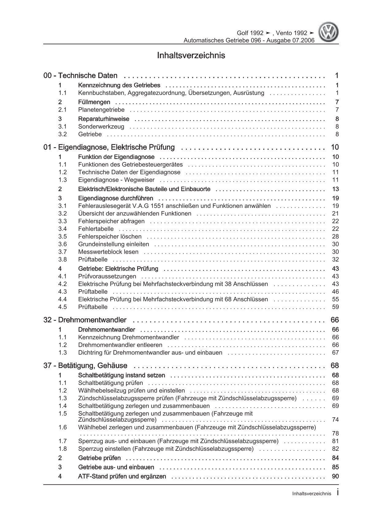 VW Golf 3 Variant 1H 93-99 4 Gang Automatikgetriebe 096 Reparaturanleitung eBook