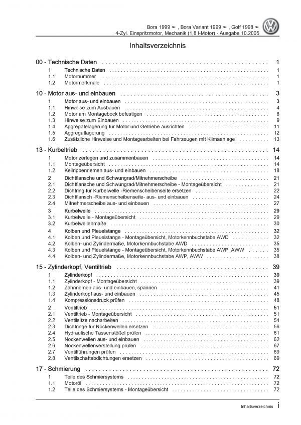 VW Golf 4 1J (97-06) 1,8l Benzinmotor 150-180 PS Mechanik Reparaturanleitung
