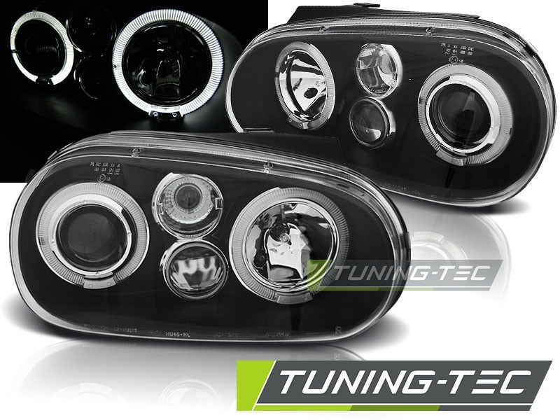 Artikelbezeichnung 1 Satz (2 Stück) VW Golf 4 Angeleyes Optik-Design-Scheinwerfer in schwarz, mit LED Standlichtringen, alle Modelle Baujahr 1997-2004 ( nicht fürModelle mit Serien- Xenonscheinwerfer • europaweite Zulassung im Bereich der STVZO • mit Leuchtmittel H1 Abblendlicht Fernlicht + Nebelsch