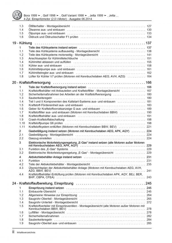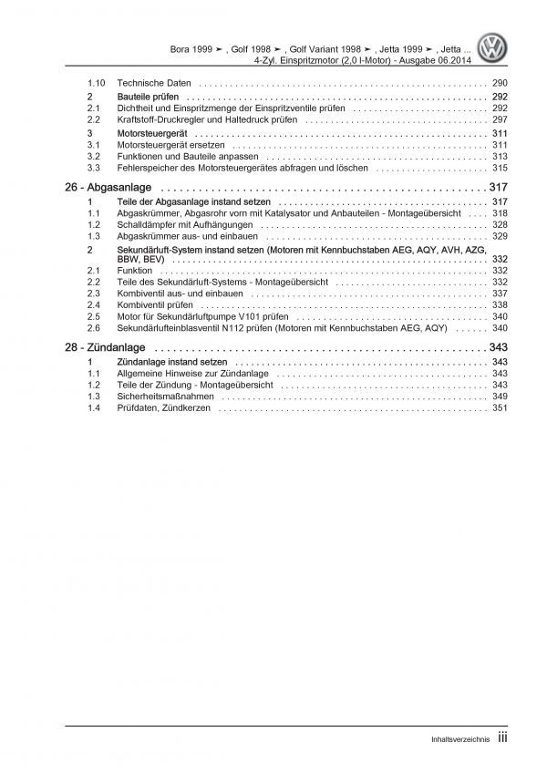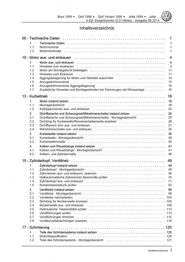VW Golf 4 Typ 1J 1997-2006 4-Zyl. 2,0l Benzinmotor 115 PS Reparaturanleitung PDF