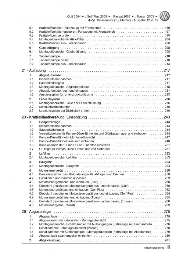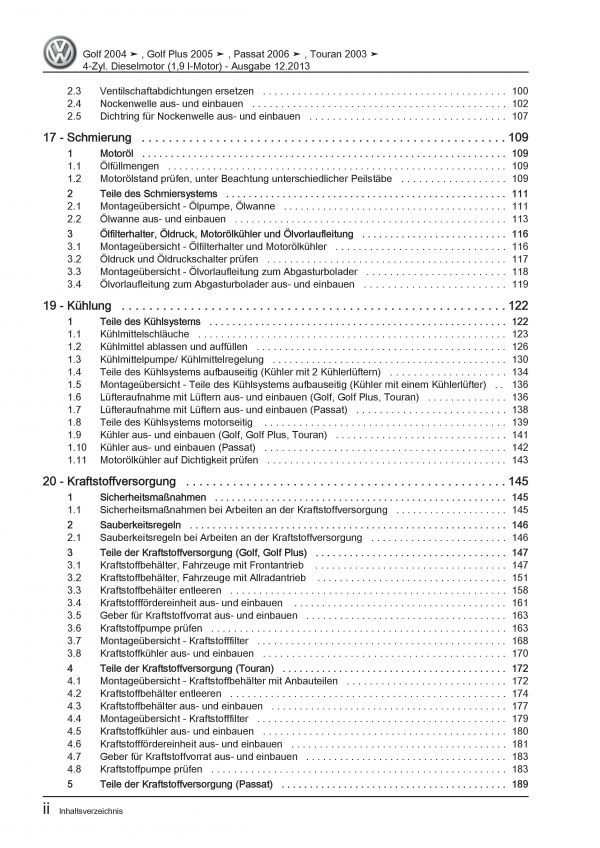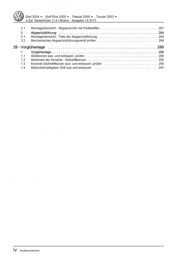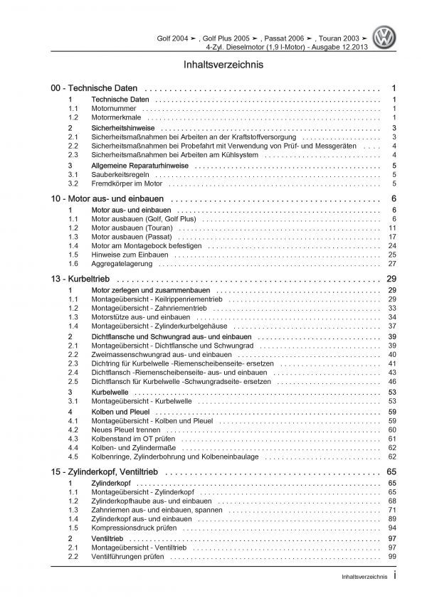 VW Golf 5 1K (03-08) 4-Zyl. 1,9l Dieselmotor TDI 90-105 PS Reparaturanleitung