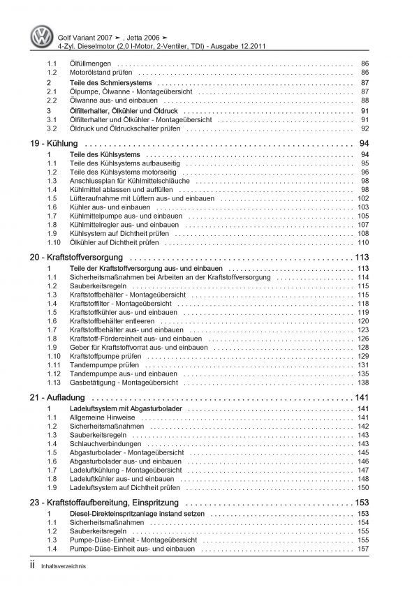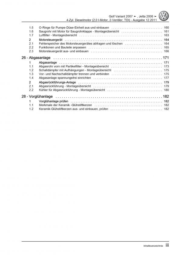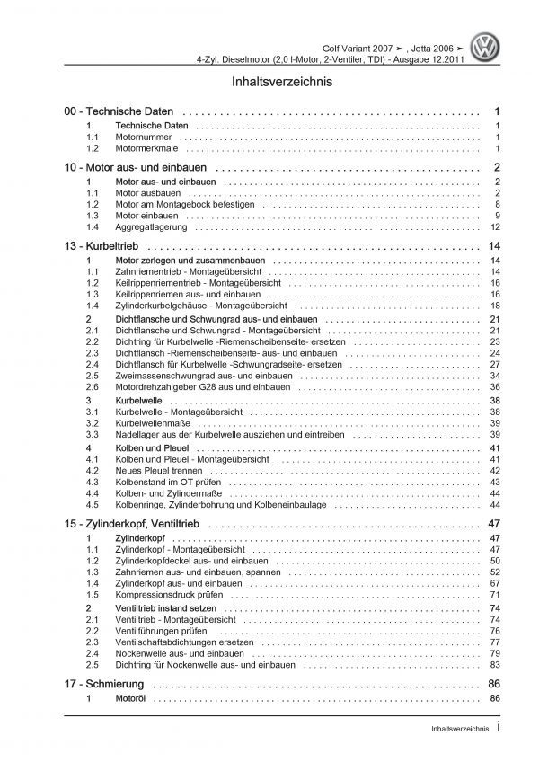 VW Golf 5 Variant 1K5 (07-09) 2,0l Dieselmotor TDI 140 PS Reparaturanleitung PDF