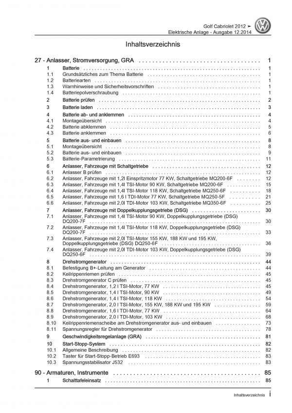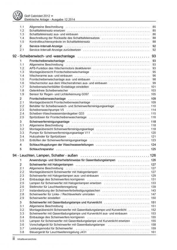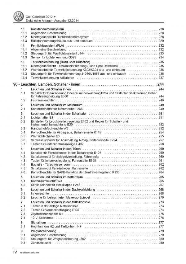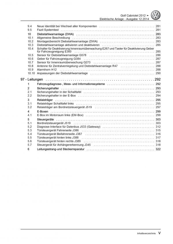 VW Golf 6 Cabriolet 11-16 Elektrische Anlage Elektrik Systeme Reparaturanleitung