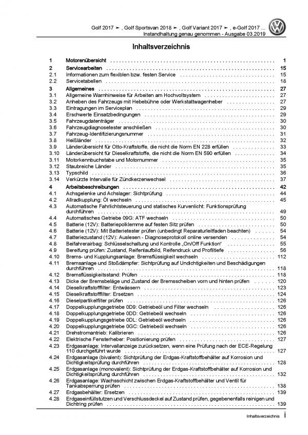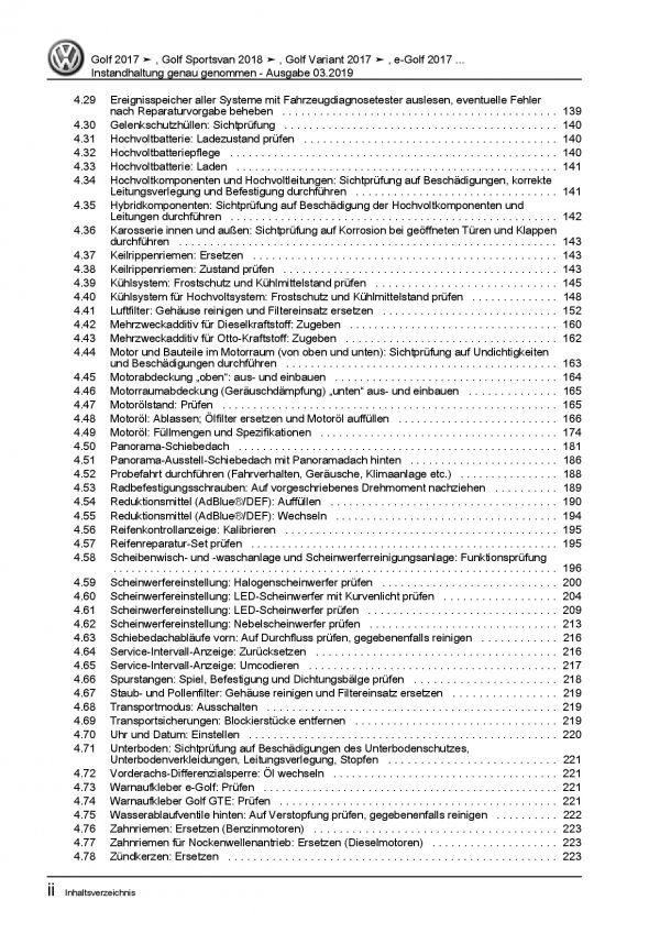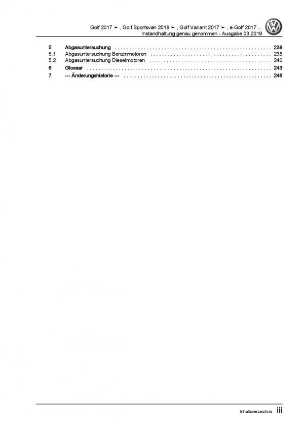 VW Golf 7 Variant ab 2017 Instandhaltung Inspektion Wartung Reparaturanleitung