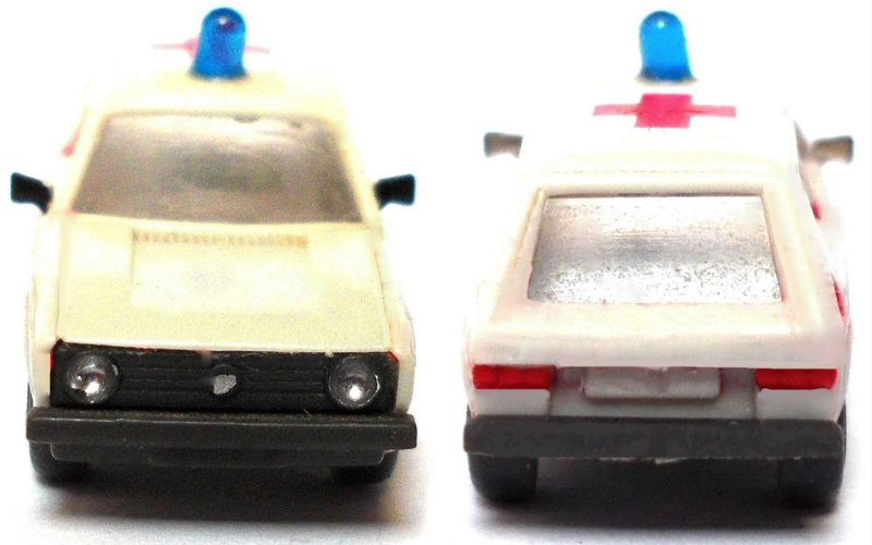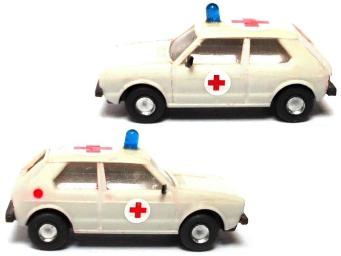 VW Golf I GL ´74, Schrägheck, altweiß, Notarzt DRK, gesupert, Ep4, Wiking, Spur N