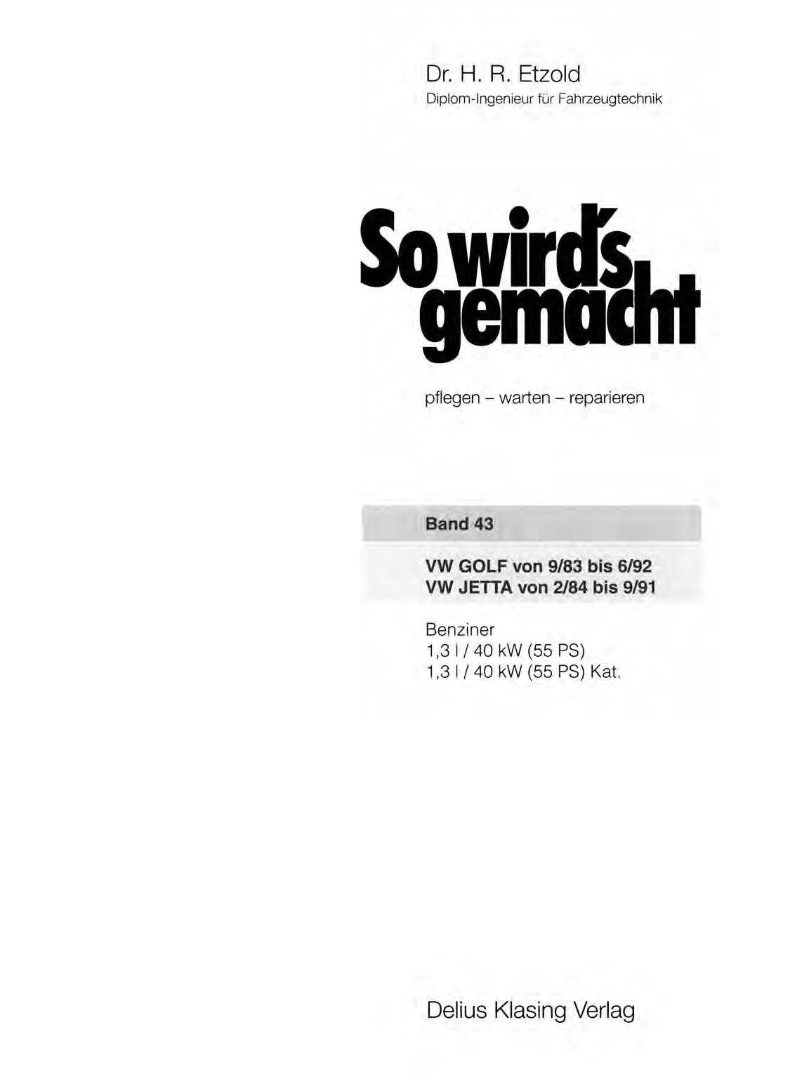Delius Klasing Verlag VW Golf II 2 Typ 19 09.1983-06.1992 So wird's gemacht Reparaturanleitung Etzold
