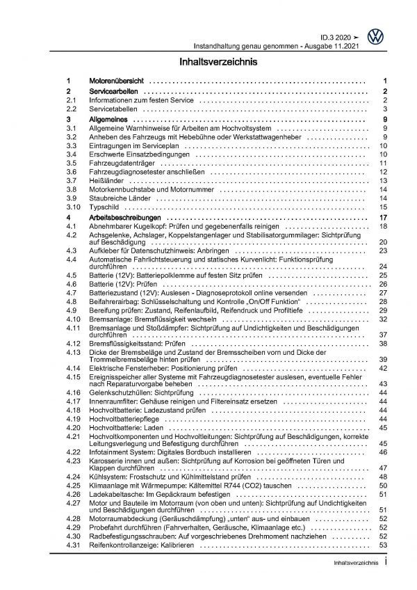 VW ID.3 Typ E11 ab 2019 Instandhaltung Inspektion Wartung Reparaturanleitung